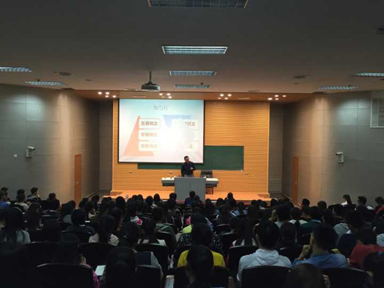 此次活动特邀贝博官网种媛、谢民两位老师为新生进行入学教育。首先,种媛老师以“大学生活”为主题,详细地为同学们讲述了自己的求学经历,劝诫新生“大学是人生中最重要的时光”,需要认真对待。随后,谢民老师分别以“大学学什么”、“知与行”等几个小节向同学们讲解了如何做人、如何做学问。两位老师的精彩讲解更是赢得了同学们的阵阵掌声!