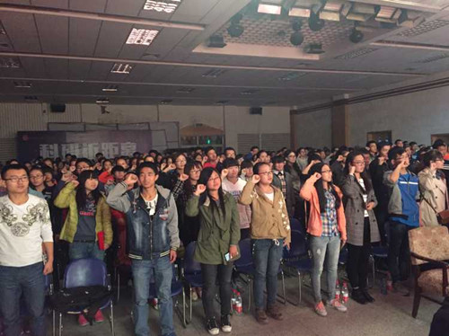 10月16日晚,贝博官网青年志愿者协会在大学生活动中心隆重举办了“2014—2015年度青年志愿培训大会暨优秀青年志愿者表彰大会”,院团委书记王瑞、专职辅导员韩若苑、兼职辅导员张杰、各兄弟学院青协主席、2015级全体学生、2014—2015年度优秀志愿者代表共计300余人参加了本次培训大会。