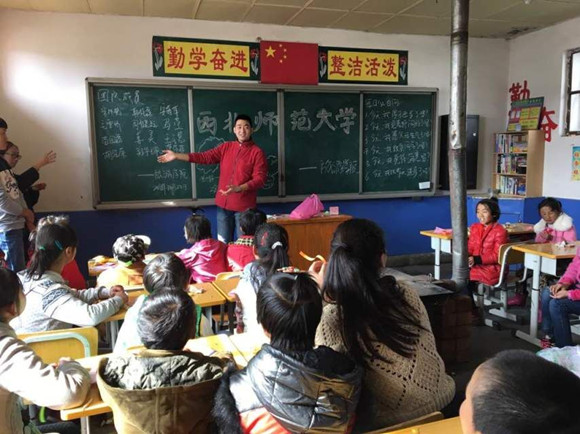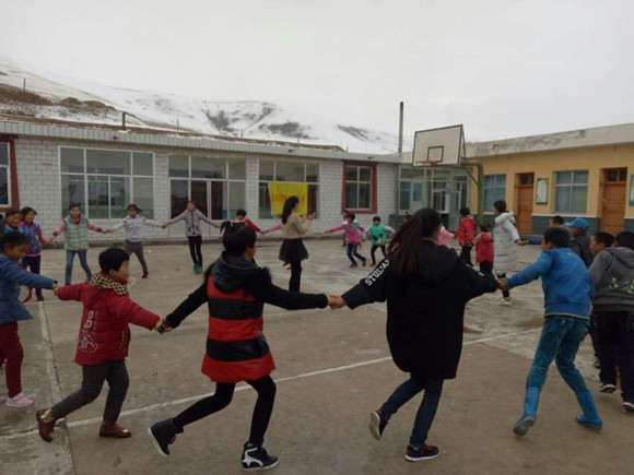 初到这里,在简单的相互介绍后,志愿者们分发了体育用具,雪后寂静的操场一下子热闹起来。不知是谁先开始扔出的雪球,一场大战即刻爆发。忘却了年龄,忘却了寒冷,忘却了来时崎岖的路途,再多的疲倦在此刻也被孩子们银铃般的笑声驱赶。大手拉着小手,脸冻得红红却相视开怀大笑。孩子们为我们表演了舞蹈,歌唱,偏僻的小村阻隔不了孩子们兴趣的飞翔。