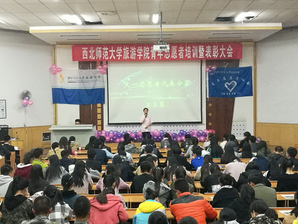 贝博官网于2016年11月11日晚在西北师范大学6号楼C区一楼会议室举办了艾弗森贝博ballbet官网青年志愿者培训暨表彰大会。出席此次会议的有校级青年志愿者协会代表屈炜铭,文学院学生阿迪娜,历史学院学生张钰童等其他学院学生代表以及贝博官网大一全体新生。