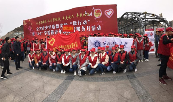3月5日上午,共青团甘肃省委联合省交通运输厅在兰州中山桥南广场开展了以“从身边做起、从小事做起,关爱他人、奉献社会”为主题的全省青少年道德实践“微行动”和学雷锋志愿服务活动。社会各界志愿者共600余人参加了启动仪式并在现场开展了志愿活动,我校志愿者代表80余人参加了此次活动,其中包括旅游院学生代表30余人。