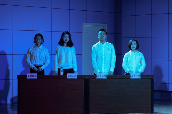 参赛双方围绕着“超越自己与超越别人哪个更困难”展开辩论,我方所持观点为“超越别人比超越自己更困难”。整场比赛从开篇立论到自由辩论再到最后的总结陈词都扣人心弦,赛场气氛格外紧张,双方辩手明争暗斗你来我往,无不体现出各位辩手逻辑思维之严密,语言组织之清晰。最后的评委打分环节,三位评委对本次辩论赛双方辩手的表现给予了较高评价,经过三位评委的投票选择,我方代表队以三比零获胜。