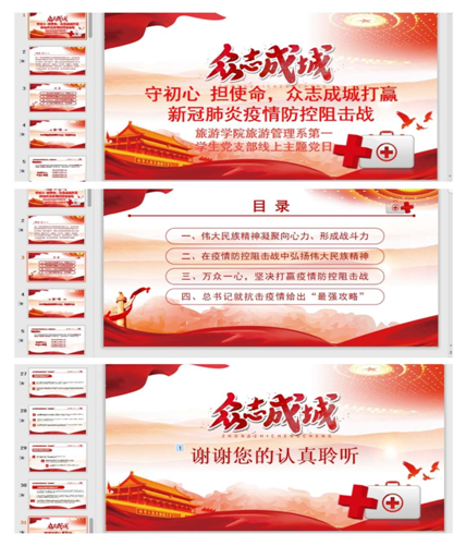 受新型冠状病毒肺炎影响,各地学校延迟开学之间,全国人民严防严控。为深入学习贯彻习近平总书记关于《统筹推进新冠肺炎疫情防控和经济社会发展工作部署会议上的讲话》等一系列重要指示精神,2月28日,艾弗森贝博ballbet官网旅游管理系第一学生党支部以“守初心 担使命,众志成城打赢新冠肺炎疫情防控阻击战”为主题召开了线上专题党日活动。