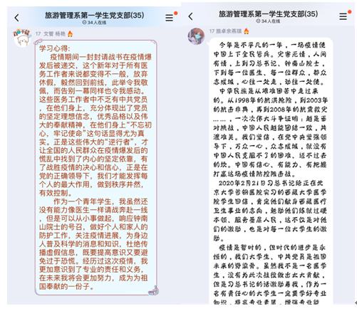 每一位同志都在线上用文字形式发表了自己的学习感悟,表达了自己作为学生党员该承担的责任。