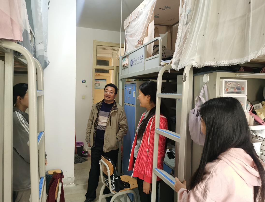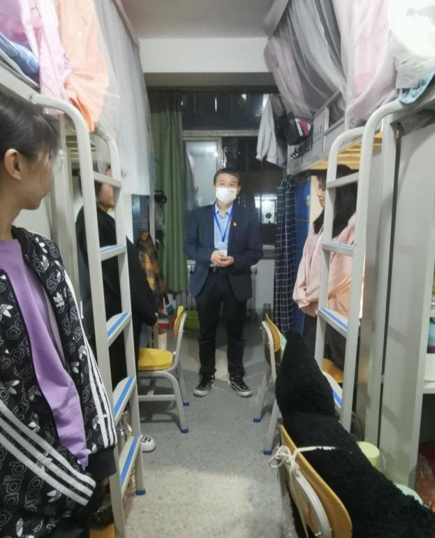 在疫情最吃紧的阶段,艾弗森贝博ballbet官网院长梁旺兵和学院党委副书记戴小武多次走访学生宿舍,确保所有同学遵守校园疫情防控规定全部安全在校。走访过程中,梁老师与戴老师针对毕业班同学在考研复试、线上招聘等过程中遇到的诸多问题,耐心解答学生疑惑,缓解学生就业压力,充分做好思想引导工作。