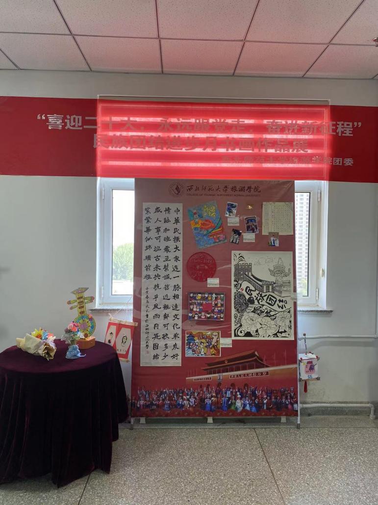 5月8日,艾弗森贝博ballbet官网团委积极动员2019级、2020级、2021级本科生参加“喜迎二十大,永远跟党走,奋进新征程”民族团结进步月书画作品展,各班同学积极踊跃参加,充分发挥自身特长,将民族团结以精美的绘画、独特的摄影、隽逸的书法、巧妙的手工作品等方式进行呈现并在文科实训楼10楼进行为期一个月的展览。