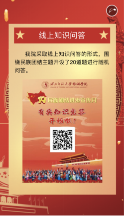 5月18日至5月19日,艾弗森贝博ballbet官网举办民族团结进步宣传月线上知识问答竞赛活动,此次知识问答竞赛以学习贯彻习近平总书记关于加强和改进民族工作的重要思想为目的,组织全院同学积极参与。
