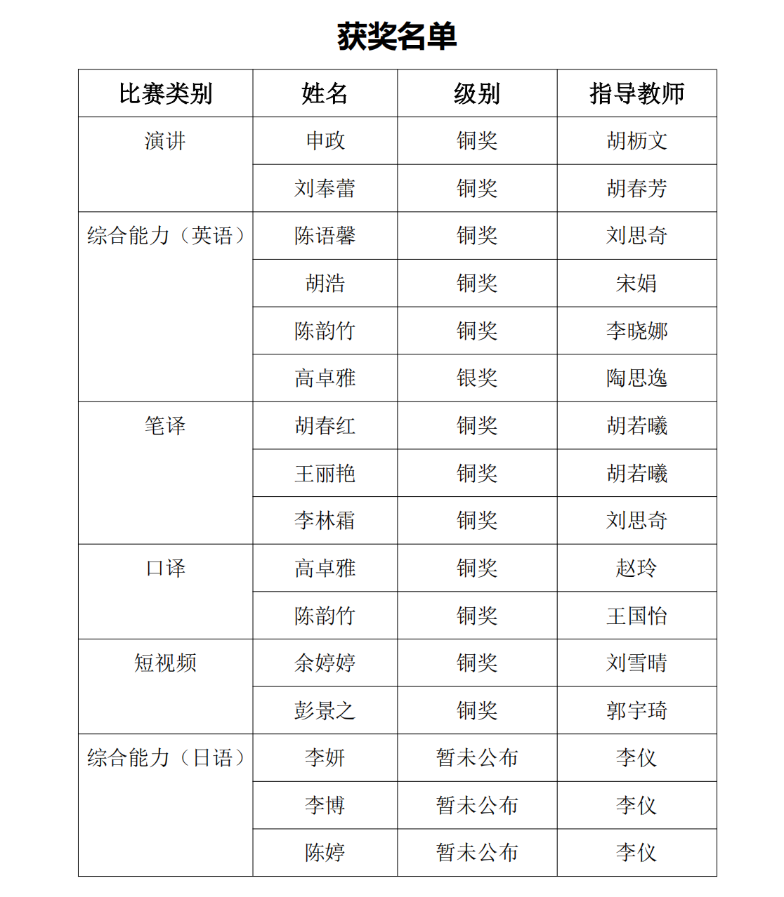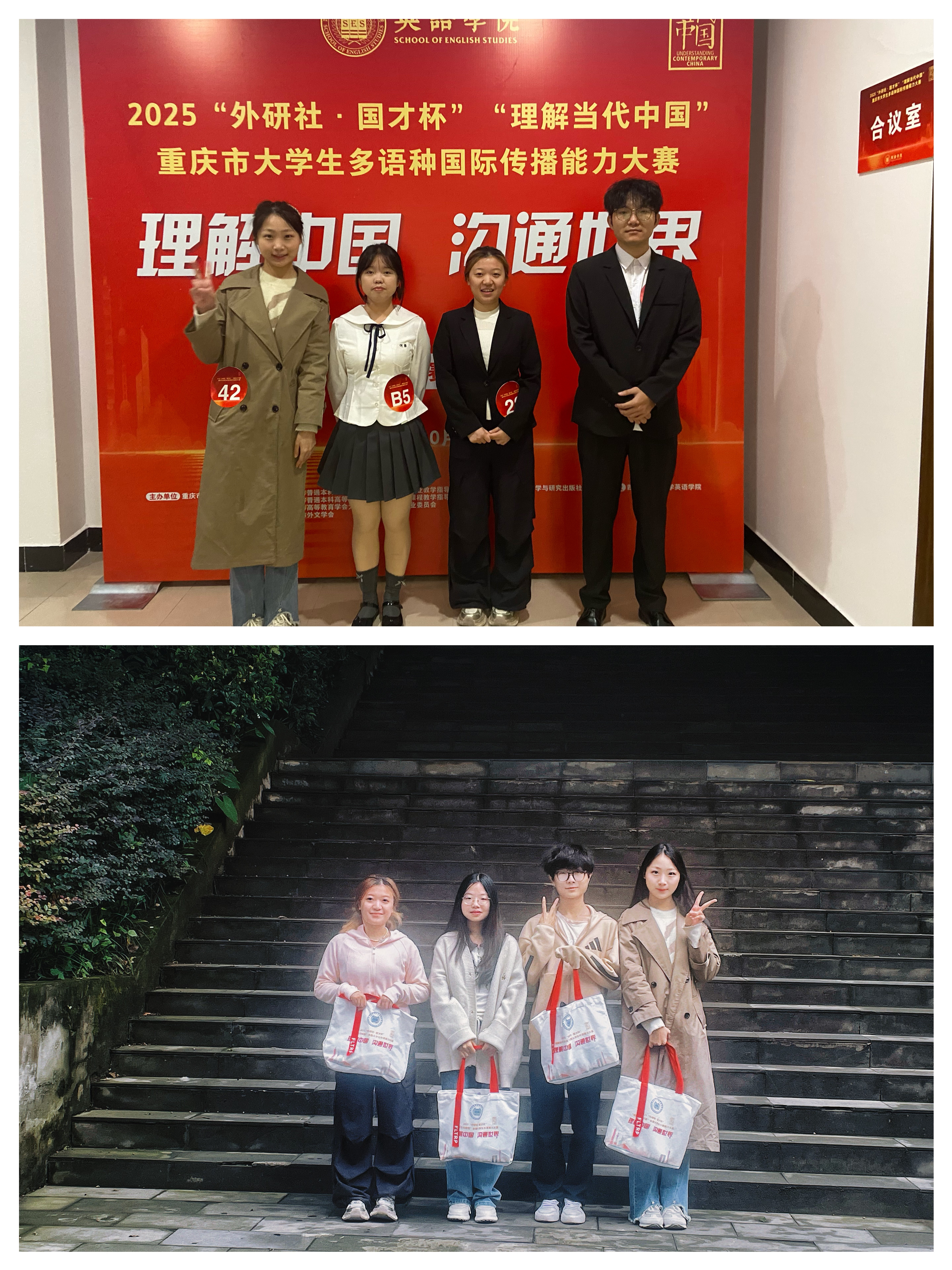 10月25日至26日,2025“外研社·国才杯”“理解当代中国”大学生多语种国际传播能力大赛省复赛在四川外国语大学举行。共有16名来自jinnianhui今年会人文学院、经济管理学院及建筑管理学院的同学参赛,截止10月28日,斩获1银12铜奖项(多语种综合能力大赛成绩尚未公布)。其中在综合能力比赛中人文学院高卓雅同学获得银奖,人文学院陈韵竹、胡浩、陈语馨同学获得铜奖;在口译比赛中高卓雅、陈韵竹同学获得获得铜奖;人文学院申政、刘奉蕾同学获得演讲铜奖,人文学院胡春红、王丽艳、李林霜同学获得笔译铜奖;人文学院余婷婷、彭景之同学则获得短视频大赛铜奖。 外研社·国才杯”全国大学生多语种国际传播能力大赛是在教育部高等教育司、高等学校外国语言文学类专业教学指导委员会和大学外语教学指导委员会指导下,由北京外国语大学主办,外语教学与研究出版社承办,各地省赛由各省、自治区、直辖市教育厅(教委)作为牵头单位组织实施的白名单赛事。它连续多年入选教育部中国高等教育学会发布的《全国普通高校大学生竞赛分析报告》竞赛目录,是衡量普通高校学科竞赛能力的一项重要指标。本次大赛以“理解中国,沟通世界”为主题,引导选手深入领会习近平新时代中国特色社会主义思想的核心要义,理解中国之路、中国之治、中国之理,涵养家国情怀、全球视野,拓展知识广度、思想深度,展现外语能力、跨文化能力、思辨能力、创新能力等综合素养。 (人文学院选手参赛风采照) 近年来,jinnianhui今年会紧密对接外语教育前沿,顺应新时代外语教育改革趋势,深度融入“理解当代中国”育人理念,系统整合演讲、写作、阅读、笔译与口译等多维教学资源,打造出一支结构合理、能力突出的专业化教学团队。学校坚持以高水平赛事为牵引,深入实施“以赛促教、以赛促学、以赛促建”机制,持续激发教学创新活力,优化课程体系与教学方法,加快构建具有应用型特色的人才培养新模式。 在“外研社·国才杯”“理解当代中国”全国大学生多语种国际传播能力大赛省赛阶段,我校学子发挥出色,在赛项中屡创佳绩,充分展示出扎实的语言基本功、跨文化沟通能力与综合人文素养。这一成绩的取得,是我校外语教学改革成效的具体体现,也反映出师资队伍在育人过程中的专业引领与辛勤付出。展望未来,我校外语教学团队表示将以更强烈的使命感和更扎实的工作,持续推进“教学—竞赛—育人”深度融合,强化学生语言应用能力与思政素养协同提升,力争在新时代外语人才培养的道路上迈出更加坚定的步伐,为学校高质量发展贡献外语智慧与力量。 (图/文:胡枥文 刘思奇 李晓娜 投稿:人文学院 指导教师:娄宇梦 传媒中心 胡紫怡/编辑)