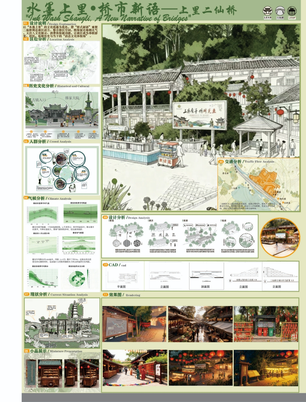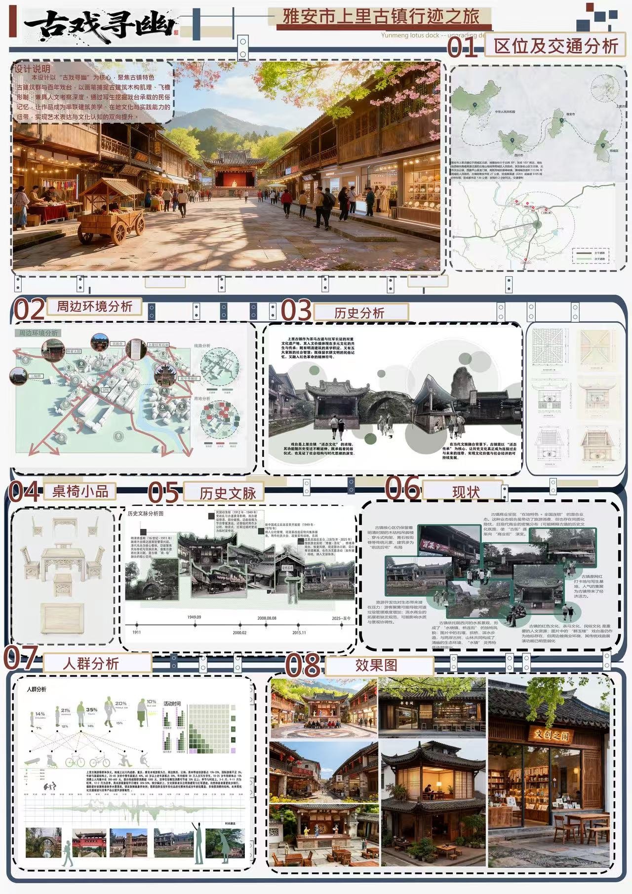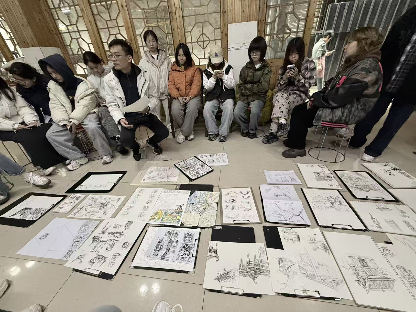 为深化实践教学改革,探索育人新路径,10月27日至11月7日,jinnianhui今年会艺术与传媒学院组织环境设计、视觉传达设计两个专业共595名学子,共赴四川雅安上里古镇,开展以“田野双生”为主题的人文考察与写生实践教学。 此次活动旨在引导学生在真实的文化场域中,完成从感知、记录到转译、创造的全流程设计思维训练,突破传统写生模式,强调“考察”与“转译”并重,两个专业基于同一文化土壤,绽放出专业特色的设计之美,形成了鲜明的教学特色与创新成果。 一、双专业特色并进,重构实践教学路径 环境设计于空间中解读人文,在场地内重构价值,侧重于“空间感知与场地重构”。在团队教师的带领下,194名学子通过实地测绘、空间记录与改造设计,深入剖析韩家大院、古戏台、街巷肌理等古镇空间,用卷尺测绘空间尺寸,用图纸解析格局,完成从“观测-解析-重构”的完整设计思维训练,最终成果以A0综合设计展板、室内外改造方案等形式,实现传统空间向当代设计的文化转译。 视觉传达于细节中解码文化,在图形中转译精神,聚焦于“视觉解构与符号转译”。教学团队创新性地设置了八个极具深度的研究性命题,如《桥与水的共生图形》、《味觉的图形转译》等,要求学生从中任选至少四个方向进行探索。教学重点在于引导学生超越表象记录,运用视觉笔记、图形解构、创意重组等专业方法,将古镇的石桥、茶文化、哒哒面、木雕纹样、红军石刻等文化元素,转化为一套套具有现代设计感的抽象图形、色彩体系与视觉符号,并以系列海报或设计素描作为最终作业。 二、构建“田野—课堂—社会”育人闭环 本次实践改革的核心在于打破了传统写生仅停留在风景描绘的局限,构建了“田野调研—设计整合—成果展示”的完整教学闭环。 在古镇的十二天里,学生们遵循“半天采集素材+写生,半天讨论+辅导+设计”的节奏,将现场感受迅速转化为设计思考。环境设计学生的手绘、测绘与视觉传达学生的图形提取、符号设计在古镇场域中创意思维。 三、以实践贯通美育,于传统启迪创新 此次“田野双生”实践,成功构建了“田野调查-课堂研讨-社会展示”的完整教学闭环,是艺术与传媒学院深化“以美育人、以文化人”培养路径的生动缩影。在古镇,环境设计学生把对空间的宏观把控作为场景语境,而视觉传达学生对细节的敏锐捕捉则注入视觉温度。 通过这次活动,艺术与传媒学院有效打通了“课堂-自然-社会”的育人通道,引导学生在未来的艺术设计道路上,真正学会追寻美、创造美、传播美,为培养具备深厚人文素养与强劲创新能力的复合型艺术设计人才写下了浓墨重彩的一笔。 (文:陈洁/图:朱耀璞、罗希、高翔、李欣灿、罗益 传媒中心 胡紫怡/编辑)