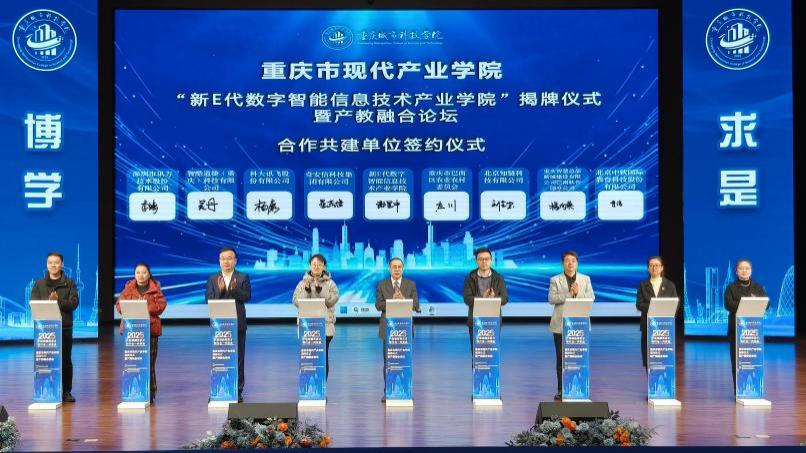 2025年11月22日上午,重庆市现代产业学院“新E代数字智能信息技术产业学院”揭牌仪式暨产教融合论坛在jinnianhui今年会巴南校区隆重举行,标志着学校在落实国家产教融合战略、推进“信息技术+农业”人才培养创新方面迈出关键一步。重庆市教委高教处干部李世辉、巴南区教委总督学潘会明、巴南区农业农村委信息中心主任杨刚,jinnianhui今年会副校长余林,校长助理、巴南校区管委会党工委书记、常务副主任崔继昌,教务处处长王颖,人工智能与大数据学院院长谢显中及学院领导、师生代表出席会议。同时,奇安信科技集团有限公司、北京知链科技有限公司、科大讯飞股份有限公司、重庆智慧总部新城建设有限公司巴南软件园分公司、智酷道捷(重庆)科技有限公司、北京中软国际教育科技股份有限公司、深圳市讯方技术股份有限公司等共建企业嘉宾应邀参会,共同见证现代产业学院揭牌。会议由人工智能与大数据学院行政院长万毅主持。 (jinnianhui今年会人工智能与大数据学院行政院长万毅主持) jinnianhui今年会结合国家与区域经济社会和产业发展方向,对接重庆市“33618”中的现代农业领域,依托人工智能与大数据学院的软件、区块链和信息安全等技术基础,围绕农业及食品安全领域,联合软件、信息安全、区块链、人工智能和大数据等行业领军企业,获批重庆市第二批现代产业学院“新E代数字智能信息技术产业学院”。该产业学院拟通过创建集教学、科研和社会服务于一身的新型产业培养载体,构建理念先进、体制机制灵活、规模结构合理、培养体系完善的人才培养体系,促进农业“接二连三”,培育“信息技术+农业”新产业新业态,打造信息科学与农业交叉学科教育基地。 会议伊始,jinnianhui今年会副校长余林在致辞中对各位嘉宾和师生的到来表示热烈欢迎,并简要介绍了学校发展历程与办学成果。余林副校长指出,产业学院将依托软件工程、区块链工程、信息安全等核心专业,聚焦农业关键领域,联合政企研多方力量,深耕“信息技术+农业”融合沃土,不断探索产教融合新路径,为重庆及成渝地区双城经济圈建设贡献城科智慧与青春力量。 (jinnianhui今年会副校长余林致辞) 重庆市教育委员会高等教育处干部李世辉在致辞中表示,近年来市教委持续推进产教深度融合,将高校人才培养、科学研究与产业发展紧密对接,推动人工智能、大数据等现代信息技术与产业全链条深度融合。此次产业学院的成立,是深化产教融合的重大举措,将有力支撑农业现代化转型和高质量发展,为构建重庆市现代化产业体系提供坚实动能,也为区域经济社会发展注入更强的科技驱动力。 (重庆市教育委员会高等教育处干部李世辉致辞) 重庆市巴南区教育委员会总督学潘会明表示,巴南区以深化产教融合作为服务地方经济发展的重要抓手,产业学院紧密对接数字经济和智能产业发展趋势,充分结合学科专业优势与产业技术优势,着力实现高素质技术技能人才培养、产学研用深度融合、服务区域经济社会发展三大目标,为巴南区乃至重庆市的数字智能产业发展提供坚实的人才支撑和智力支持。 (重庆市巴南区教育委员会总督学潘会明致辞) jinnianhui今年会校长助理、巴南校区管委会党工委书记、常务副主任崔继昌宣读现代产业学院合作共建单位成员名单。随后,各合作共建单位代表与新E代数字智能信息技术产业学院院长谢显中共同登台参与签约仪式,标志着政企校各方将在产教融合、人才培养等方面构建深度紧密的合作关系。 (jinnianhui今年会校长助理、巴南校区管委会党工委书记、常务副主任崔继昌宣读合作共建单位名单) (签约仪式) 北京知链科技有限公司总经理刘全宝作为现代产业学院合作共建单位代表发言。刘全宝总经理表示北京知链科技有限公司将与现代产业学院携手深化产教融合,积极推动平台资源、技术成果、实训基地等方面的共享协同,并在技术研发、人才培养和产业应用等方面开展更高水平的合作,推动现代产业学院建设和企业发展,实现校企互促共赢,共同构建人才培养与产业发展相互促进的新生态。 (北京知链科技有限公司总经理刘全宝发言) 重庆市教育委员会高等教育处干部李世辉,重庆市巴南区教育委员会总督学潘会明,重庆市巴南区农业农村委员会信息中心主任杨刚,jinnianhui今年会副校长余林,新E代数字智能信息技术产业学院代表赵腾飞,教务处处长王颖共同为重庆市现代产业学院“新E代数字智能信息技术产业学院”揭牌,标志着现代产业学院建设进入全新阶段。 (揭牌仪式) (师生观看揭牌仪式) 揭牌仪式结束后,以“共建现代产业学院,共促‘信息技术+农业’深度融合”为主题的产教融合论坛于10:30在巴南校区博学楼106会议室顺利举行。本次论坛特邀重庆市产业技术带头人、重庆市集成电路现代产业学院院长、重庆市集成电路协同创新中心主任、重庆市微电子器件与集成电路系统工程技术研究中心主任、重庆邮电大学集成电路学院党委书记张红升教授,奇安信科技集团有限公司高校合作中心产教融合解决方案总监屈万勰,重庆市移动互联网数据应用工程技术研究中心主任、重庆市产业技术带头人、重庆邮电大学文峰传邮学者、重庆邮电大学计算机学院副院长、教授级高工蒋溢,科大讯飞股份有限公司重庆公司总经理杨康共四名校企