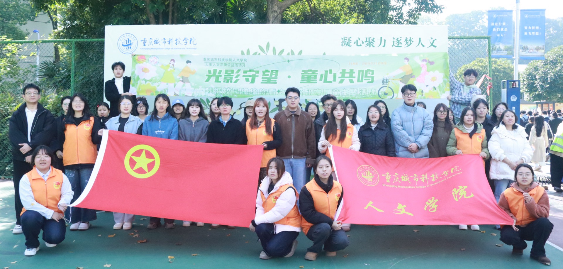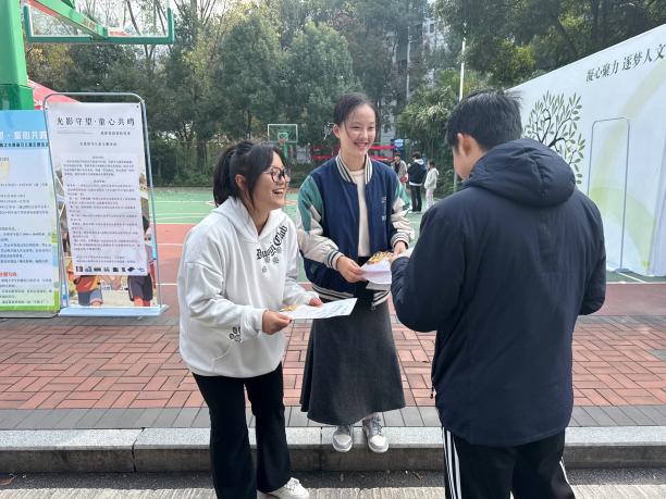 为搭建校园与山区留守儿童的情感桥梁,传递青春温暖与社会关怀, 11月24日,由重庆儿童救助基金会童心成长爱心基金与jinnianhui今年会人文学院联合主办的“我把校园拍给你看”公益活动在AB栋篮球场温情启幕。活动以摄影为纽带、以爱心为内核,吸引了大批学子踊跃参与,用镜头定格校园美好,用行动点亮留守儿童的纯真期盼。 活动现场设置了多元互动环节,充满青春暖意与公益情怀。千纸鹤祈福区前,同学们围坐成圈,指尖翻飞间,一张张彩纸被折成形态各异的千纸鹤用笔书写下简短的祝福暗号,每一只都承载着美好期许。镜头前的同学们手握小红花,用它承载每一份真情。DIY手工区里,大家发挥创意巧思,制作精美发卡,用这些工艺品寄托对留守儿童的关怀情感。 寄语书写处,同学们拿起笔在纸条上写下走心话语,字句里满是真诚与鼓励,知识大转盘也充满了欢声笑语,同学们踊跃抢答,在轻松互动中深化对公益事业的理解,也让爱心传递更具知识性与趣味性。此外,承载着无数寄语的梦想树作为视频录制区始终人气高涨,同学们对着镜头自信表达。 经管学院的同学写下祝福,愿他们能走出当下的困境,迈入更广阔的天地,用努力拥抱理想。人文学院的同学祝愿小朋友们能天天开心,茁壮成长,考上理想的大学,成为想要去成为人。人工智能与大数据学院的同学们希望小朋友们能感受当下科技的发达,在将来也能靠自己的双手创造出改变世界的智能科技。数不过来的温暖问候、一段段真挚祝福,通过镜头被定格成珍贵的影像。 这场跨越千里的心意奔赴,早就不只是简单的物资帮忙。校园里的那些瞬间,藏着我们对知识的珍惜、对青春的热乎劲儿、对生活的满心欢喜,更装着心里那份朴素实在的想法。每一份支持、每一句留言,每一次参与,都是给留守儿童最真诚的牵挂和温暖。 此次活动积极发挥了城科学子的青春力量,以生活化的方式搭建公益桥梁,既让留守儿童感受到社会关怀,也让大学生在实践中深化责任担当,传递向上向善的社会风尚。(舒中莹/图 龚欣怡/图 成思亚/图 王楠/文 卢沼汐/文 杨灿/文 传媒中心 易雪/编辑)