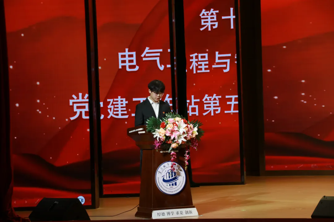 为深入贯彻落实第二十八次全国高校党的建设工作会议精神,深刻认识高校党建工作的新使命新挑战新要求,明确新时代高质量党建对学生工作的引领作用,实现高质量党建引领学生工作高质量发展。2025年11月20日晚,电气工程与智能制造学院于第一学术报告厅开展2025年电气工程与智能制造学院高质量党建促学院学生工作高质量发展工作总结会。电气工程与智能制造学院院长陈进、党总支副书记李宇、副院长张玉林、大学生党建工作中心指导老师马煦玥、学院党总支组织委员徐源、党总支纪检委员陈晓庆、党总支青年委员陈慧、学生第一党支部书记张雪雪、学生第三党支部书记牟凤利及党建工作站指导老师出席会议。电气工程与智能制造学院学生代表以及党建工作站、集成电路创业史陈列馆全体人员参会,本次大会由尹代松,李思静同学主持。 (图1 会议全景) (图2 主持人) 第一篇章 初心铸魂忆征程,薪火赓续显担当 (图3 朗诵表演) 《百年正青春》朗诵表演结束后,主持人尹代松致开场词并介绍领导及嘉宾,接着护旗手迈着铿锵有力的步伐走进舞台中央,参会人员全体起立,奏唱国歌。 (图4-5 全体成员奏唱国歌) 会议伊始,大学生党建工作中心指导老师马煦玥老师上台为本次大会致辞。首先,她回顾电气工程与智能制造学院以党建工作站、集成电路陈列馆为载体,借“三线精神”引领学生工作的成果。接着,介绍工作站夯实党务、开展志愿服务活动、打造“党建促学风”品牌,以及陈列馆在传承红色文化、助力思政建设的作用。最后,她号召师生奋进,助力学生工作发展、培育青年人才,并预祝大会成功。 (图6 马煦玥老师致辞) 紧接着,徐源老师和张院强老师为电气工程与智能制造学院党建工作站第四届骨干及集成电路创业史陈列馆第七届骨干颁发聘书。 (图7-8 颁发聘书) 承前启后,再谱新篇。集成电路创业史陈列馆第七届骨干代表杨洪承发言。首先,他代表陈列馆及学院党建工作站向长期关心支持相关工作的领导、老师和同学表达感谢;接着,他回顾了过去一年陈列馆作为市区两级爱国主义教育基地,在红色文化传播、科研精神传承及情景剧《“芯”征程》展演等方面的成果,同时介绍了学院党建工作站在党务工作、特色品牌活动等方面的成效;最后,他寄语新一届骨干及干事,希望大家接续奋斗根基、秉持进取之心,以坚定信念与务实作风创造新业绩,为事业发展注入新活力。 (图9 学生骨干杨洪承发言) 初心如磐,使命如炬。徐源老师宣读《2024-2025学年高质量党建促学院学生工作高质量发展表彰文件》。随后,陈进院长、张玉林副院长等多位院领导及老师,分别为“优秀部门”“陈列馆优秀骨干”等7类奖项的获得者颁奖,各获奖代表上台领奖并合影,大会氛围庄重热烈。 (图10 徐源老师宣读表彰文件) (图11-17 颁奖仪式) 接力新起点,奋斗正当时。由学生们带来情景剧表演《致青春》,它告诉我们,共产党员的青春,永远与信仰同行,与奋斗共进。这场演出,为此次换届大会烙下了深刻的青春印记,也激励着新老两代党员,在各自的赛道上,共同跑好历史的接力棒。 (图18-19 情景剧表演) 第二篇章 使命聚力启新程,青春筑梦向未来 情景剧《致青春》的精彩演绎落下帷幕,会议随即进入第二篇章。盛一凡老师上台宣读电气工程与智能制造学院第五届党建工作站及集成电路创业史陈列馆第八届骨干名单,正式揭开换届新篇章。随后,电气工程与智能制造学院党建工作站及集成电路创业史陈列馆换届交接仪式顺利进行。 (图20 盛一凡老师宣读骨干名单) (图21 换届交接仪式) 青春寄语,展望未来。第五届党建工作站站长何磊发言,从理论传播、创新实践、组织建设、打造特色品牌四个方面具体讲述了党建工作站未来发展目标,并表示将以初心为舵、以实干为帆,在创新中求突破,在奋进中谋发展。紧接着,全体观看学长学姐的寄语视频,既有经验传承也有殷切期许,让在场同学备受鼓舞。 (图22 党建工作站站长何磊发言) 殷切嘱托,寄予厚望。会议尾声,李宇副书记做总结讲话。她首先代表电气工程与智能制造学院党总支,向受到表彰的先进组织与个人致以热烈祝贺,对电气工程与智能制造学院全体师生致以崇高敬意与感谢之情。回顾了过去党建工作站和陈列馆的工作成果,从“把稳思想之舵,夯实理论基础”“传承红色使命,坚守初心立场”“创新实践锻炼,彰显使命担当”“强化组织凝聚力”“做好梯队建设,传承红色薪火”五方面对新一届学生骨干表达期望。李宇副书记强调要心怀梦想,脚踏实地,勇往直前,不断提升自我素养让青春在不懈奋斗中绽放绚丽之花。 (图23 李宇副书记作总结讲话) 党建引领,聚力前行。本次换届大会既是对电气工程与智能制造学院党建工作站及集成电路创业史陈列馆过往一年工作的全面总结与成果表彰,更是凝聚新力量、绘画新蓝图的动员大会。愿新一届骨干与干事们牢记使命、勇担重任,以昂扬姿态、坚定信念投身学院工作,共同推动学院各项事业高质量发展,书写电气工程与智能制造学院建设的崭新篇章! (图24 合影留念) (马冰冰/文 高雪芹/文 罗裕/图 熊程亿/图 传媒中心 易雪/编辑)