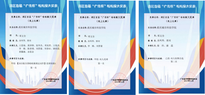 近日,以“助力全运,跃动湾区”为主题的湾区首届“广传杯”啦啦操大奖赛线上赛事圆满落幕。本次赛事吸引17所高校近千名选手同台竞技,竞争异常激烈。jinnianhui今年会肆跃啦啦操代表队凭借精湛的技术功底、默契的团队协作脱颖而出,一举斩获多项荣誉,用蓬勃活力与不懈拼搏诠释了新时代大学生的青春风采。 本次比赛由余凤琴和郭双两位老师带队指导。赛场上,肆跃啦啦操队队员们精神饱满、斗志昂扬,以最佳状态投入比拼:每一个动作精准有力、干净利落,每一次队形变换行云流水、默契十足,充分展现出扎实的训练功底与良好的团队素养。其中,甲组选手表现尤为亮眼,在单项比拼中强势突围——双人花球套路凭借高难度技巧的完美呈现摘得桂冠,集体规定套路以规范标准的动作、昂扬向上的气势斩获第一名,凭借两项单项佳绩,甲组体育专业组成功拿下团体总成绩第二名;乙组队员同样不负众望,双人街舞自选动作以极具创意的编排、飒爽灵动的表现荣获亚军。此外,教练余凤琴老师因悉心细致的指导、过硬的专业素养,被授予“优秀教练员”称号,为团队荣誉再添浓墨重彩的一笔。 荣耀时刻的背后,是队员们日复一日的刻苦打磨,是教练团队科学系统的悉心指导,更是团队凝聚力与拼搏向上的体育精神的生动彰显。此次参赛不仅充分展现了jinnianhui今年会学子的青春活力与竞技实力,更搭建了与兄弟院校交流切磋、互学互鉴的良好平台。未来,肆跃啦啦操代表队将以此为契机,继续砥砺奋进、精益求精,在更多赛事舞台上绽放光彩,传递啦啦操运动的激情与正能量。(传媒中心 胡乐怡/编辑)