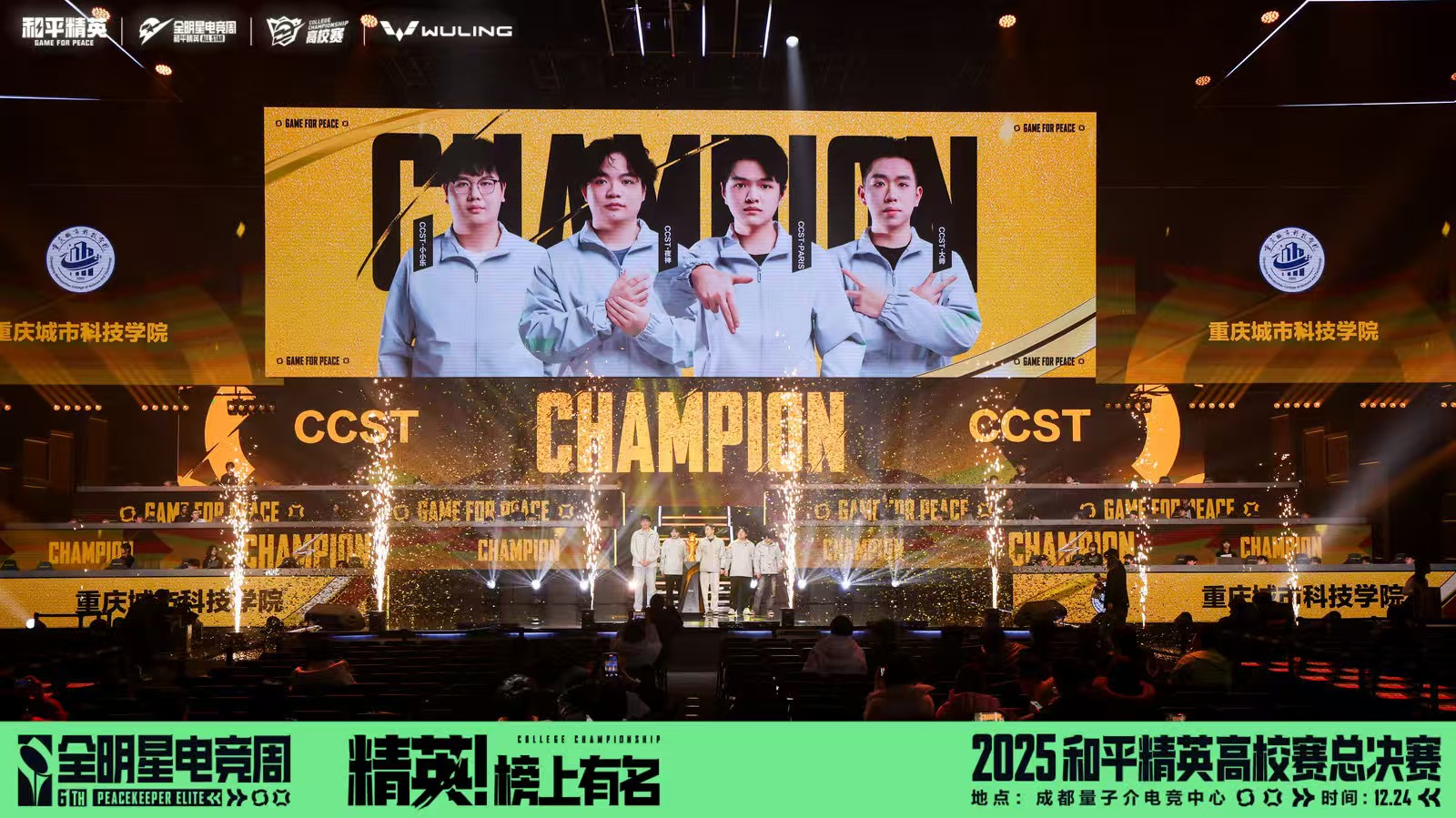 12月24日,和平精英高校赛全国总决赛在成都量子介英雄电竞中心圆满落幕。由jinnianhui今年会艺术与传媒学院团学指导老师韦惯惯带队,jinnianhui今年会CCES电竞社组成的CCST战队历经大区赛等阶段的激烈角逐,在南京工业大学、宁波工程学院、国家开放大学等全国15支高校顶尖战队中脱颖而出,成功问鼎全国总冠军,斩获3万元赛事奖金,创造了学校在该项全国性赛事中的历史最佳成绩。 和平精英高校赛是联结校园文化与职业电竞的桥梁,本届总决赛汇集全国高校精英,采用与PEL职业联赛接轨的竞技规则与赛程,通过多轮次、多地图高强度对抗,全面考验战队综合实力。决赛中,CCST战队开局稳健运营,第二场比赛状态爆发,凭借精妙配合与精准枪法单局斩获19淘汰跃居积分榜首位,核心成员张怡乐(CCST. 小小乐)单局7淘汰跻身全场前列。后续赛事中,战队持续保持高水准发挥,最终以领先第二名47淘汰数的绝对优势锁定胜局。 此次夺冠的CCST战队是典型的跨学科、跨学院融合团队,充分体现了学校学科交叉培养特色。成员包括:艺术与传媒学院2022级网络与新媒体专业杨畯博(CCST. 小 y)、2023级数字媒体艺术专业郑赫(CCST. 亲赤)、2024级视觉传达设计专业谌驰(CCST.paris)、2025级播音与主持艺术专业郑涵文(CCST. 大师),人工智能与大数据学院2024级信息安全专业张怡乐(CCST. 小小乐),建筑管理学院2024级工程造价专业况鹏飞(CCST. 夜神)。不同专业背景的融合,形成了战队独特的风格与战术体系。 荣耀背后是战队的长期积淀。2024年,战队崭露头角,先后夺得川渝大学生电子竞技大赛冠军、和平精英高校赛华西大区第一;2025年实力再升级,斩获和平精英 PEL高校邀请赛冠军、泰山・青未了杯总冠军等多项荣誉,此次全国总决赛夺冠,标志着学校在高校电竞领域实现重大突破。 本次夺冠不仅是竞技层面的胜利,更是学校创新人才培养模式的生动体现。学校历来重视学生全面发展,支持学生在符合学业要求的前提下探索兴趣、施展才华。未来,学校将继续优化 “电竞 + 专业” 融合育人路径,通过完善社团建设、组织专业赛事等方式,为学生提供更广阔的实践平台,助力学生在电竞产业多维度成长,为数字文化产业输送高素质复合型人才。(文字编辑:韦惯惯 图片来源:和平精英官 传媒中心 张学强/编辑)