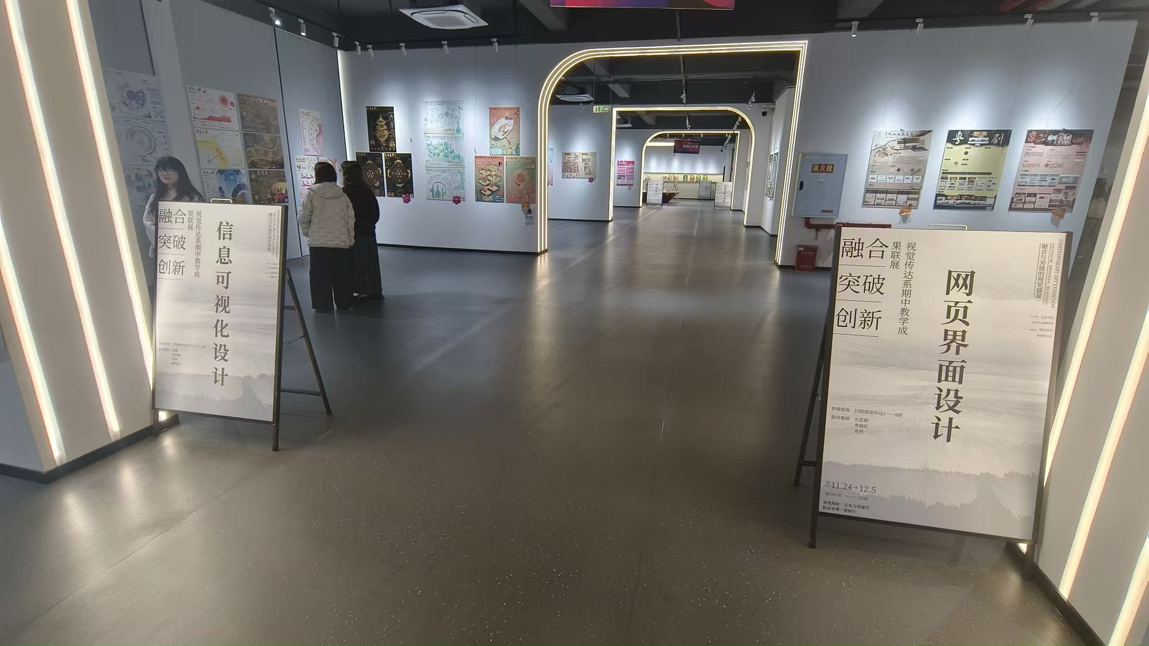 11月27日13时,艺术与传媒学院视觉传达系期中教学成果联展在巴南校区隆重开展。本次联展以“融合、突破、创新”为主题,集中呈现了人工智能与艺术、信息可视化设计、网页界面设计、印刷设计、国潮·非遗文创设计、字体设计等六门结课课程的教学成果,系部全体教师齐聚现场参观交流、合影留念,并严格按照评奖细则完成作品评审,院长蔡敏、院长助理邵文杰出席活动并指导。 展览现场,百余件学生作品错落陈列,涵盖数字艺术、传统工艺、视觉设计等多个领域,充分展现了视觉传达系学子扎实的专业功底与大胆的创新思维。人工智能与艺术课程作品中,学生们运用AI技术赋能创意表达,将算法逻辑与美学理念深度融合,创作出兼具科技感与艺术性的视觉作品;国潮非遗文创设计课程则聚焦传统文化活化,学生们从非遗技艺、传统纹样中汲取灵感,设计出茶具、饰品、包装等系列文创产品,让传统美学在现代生活中焕发新生。各课程作品风格鲜明、创意多元,既体现了课程教学的专业特色,又呼应了“融合突破创新”的展览主题。 本次联展制定了明确的评奖细则。现场向全体教师发放学生作品评分表,评审工作以课程为单位展开(而非按班级划分),每位教师从创意构思、表现技法、主题契合度等维度对作品进行量化打分。经过严谨评审,各课程分别评选出优秀作品,最终根据综合得分评定出一、二、三等奖,获奖作品将作为教学成果重点展示并纳入学生实践成绩考核。评审过程中,教师们围绕作品展开热烈讨论,既肯定了学生的创新突破,也针对作品中存在的问题提出了改进建议,实现了教学相长的良好互动。 院长蔡敏参观展览并发表讲话,他对视觉传达系期中教学成果联展的成功举办表示祝贺,对参展作品呈现出的创意水准与专业素养给予高度评价。“本次联展是视觉传达系教学质量的一次集中检验,更是‘融合、突破、创新’教学理念的生动实践。”蔡敏指出,视觉传达设计行业正处于快速变革期,跨界融合、技术创新成为发展趋势;学院始终重视教学改革与实践创新,鼓励师生打破学科壁垒、探索多元表达。他希望视觉传达系以此次联展为契机,进一步深化课程体系改革,强化产教融合与校企合作,将创新思维贯穿教学全过程,着力培养适应行业发展需求的复合型设计人才。同时,他寄语学子们要保持对艺术的热爱与探索精神,在传承优秀文化的基础上勇于突破自我,用设计语言传递时代声音。 院长助理邵文杰强调,教学成果联展是连接课堂教学与实践应用的重要桥梁。他表示,视觉传达系此次参展的六门课程涵盖了传统与现代、技术与艺术、理论与实践的多元融合,充分体现系部在教学内容、教学方法上的创新探索。未来,学院将继续支持各系部开展此类教学成果展示活动,为师生搭建交流学习的平台,推动教学质量持续提升,助力学生成长为具备创新能力与实践能力的高素质专业人才。 此次期中教学成果联展的成功举办,不仅全面展示了jinnianhui今年会视觉传达系的教学成效与学子风采,更搭建了师生交流、教学反思的良好平台。通过展览与评审,进一步明确了教学改革的方向,激发了师生创新热情。视觉传达系将以此次联展为新起点,持续深化“融合、突破、创新”的教学理念,不断提升教学质量与人才培养质量,为艺术设计领域输送更多优秀人才。(周彦辰/图 周彦辰/文 传媒中心熊素平/编辑)