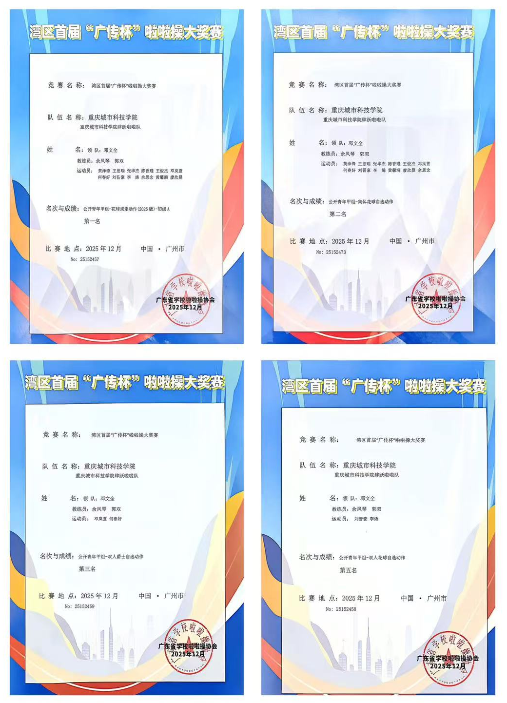 12月5日至7日,湾区首届‘广传杯’啦啦操大奖赛暨2024—2025年广东省学校啦啦操冠军赛在华南农业大学珠江学院广州(从化)校区成功举办。赛事汇聚全国啦啦操精英,以激情与律动点燃冬日校园。 本次大赛由中国蹦床与技巧协会提供技术支持,广东省学校啦啦操协会主办,华南农业大学珠江学院、新活力体育产业学院与广州市从化区文化广电旅游体育局共同承办,并得到北京市健美操体育舞蹈协会、天津市啦啦操运动协会、内蒙古健身舞蹈运动协会等全国十余个省市及港澳地区行业协会的鼎力支持。比赛共吸引来自全国11个省份的155支队伍、超过6700人次参与。各地健儿齐聚珠江学院,以动感节拍诠释团队力量,凭缤纷舞姿展现项目多元创造力,在赛场上共同绽放青春光彩。 jinnianhui今年会肆跃啦啦操代表队在体育与大健康学院陈志军、郭双、余凤琴三位老师的带领下,全力以赴、奋勇拼搏,凭借扎实的技术功底与饱满的精神风貌斩获多项荣誉,尽显青春活力与团队风采。 比赛现场,肆跃啦啦操队队员们默契配合、动作利落规范,将啦啦操的活力与美感完美融合。集体项目中,队员们凭借整齐划一的动作、昂扬向上的姿态脱颖而出,成功斩获集体规定套路冠军与集体自选套路亚军;双人项目赛场同样亮点纷呈,队员稳定发挥,分别获得双人爵士季军、双人花球第五名及双人街舞第六名。个人荣誉方面,秦玲同学凭借出众表现荣获校园啦啦操之星优胜奖,康蕊同学坚守体育精神、展现优良素养,获评体育道德风尚奖。 此次参赛不仅充分展现了jinnianhui今年会学子积极进取、奋勇争先的精神风貌,更以赛事为纽带促进交流学习、实现自我提升,为校园体育文化建设注入了新的活力。未来,肆跃啦啦操队将再接再厉,不骄不躁,在各类赛事中持续突破自我、绽放更耀眼的光彩。(传媒中心 高晓兰/编辑)