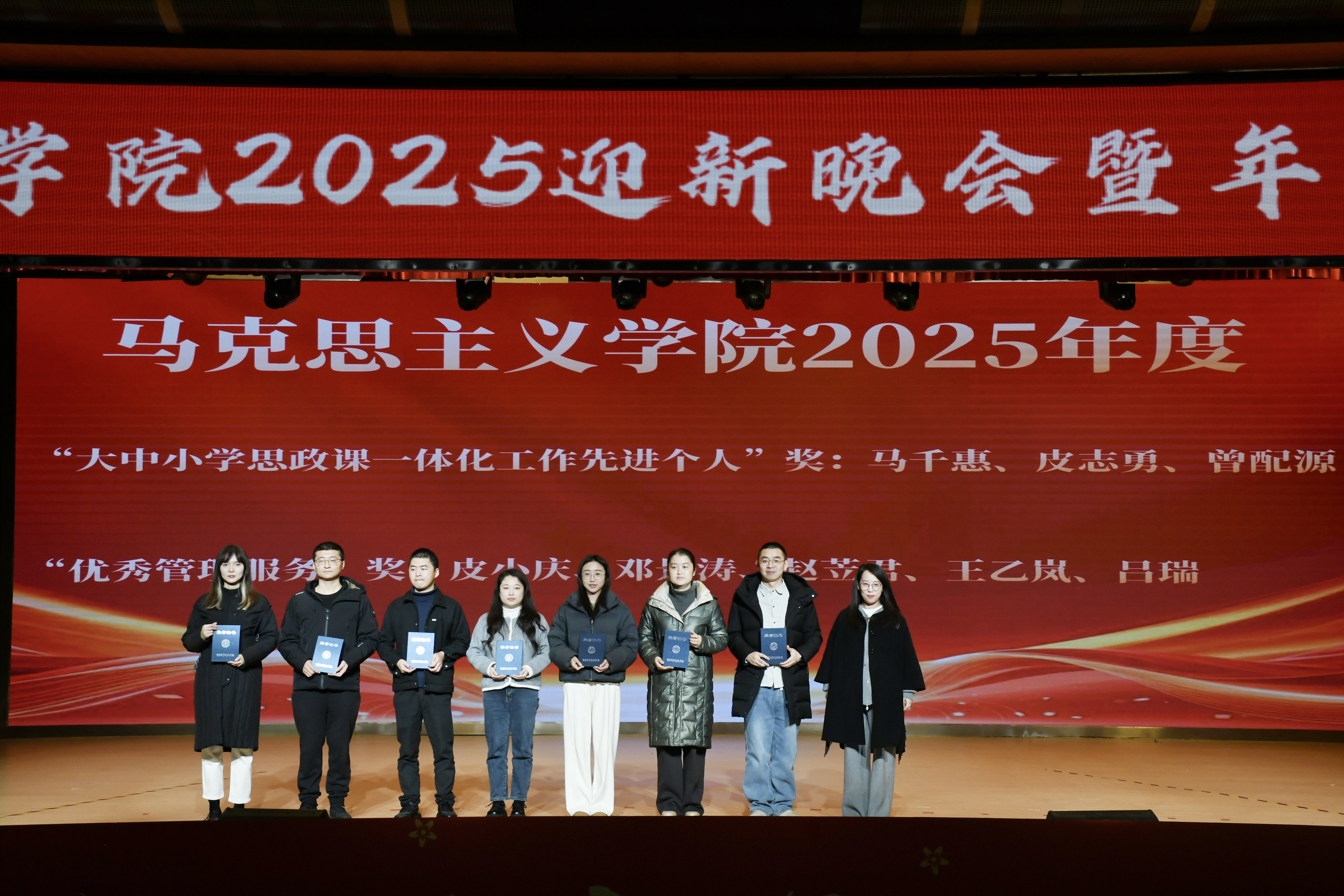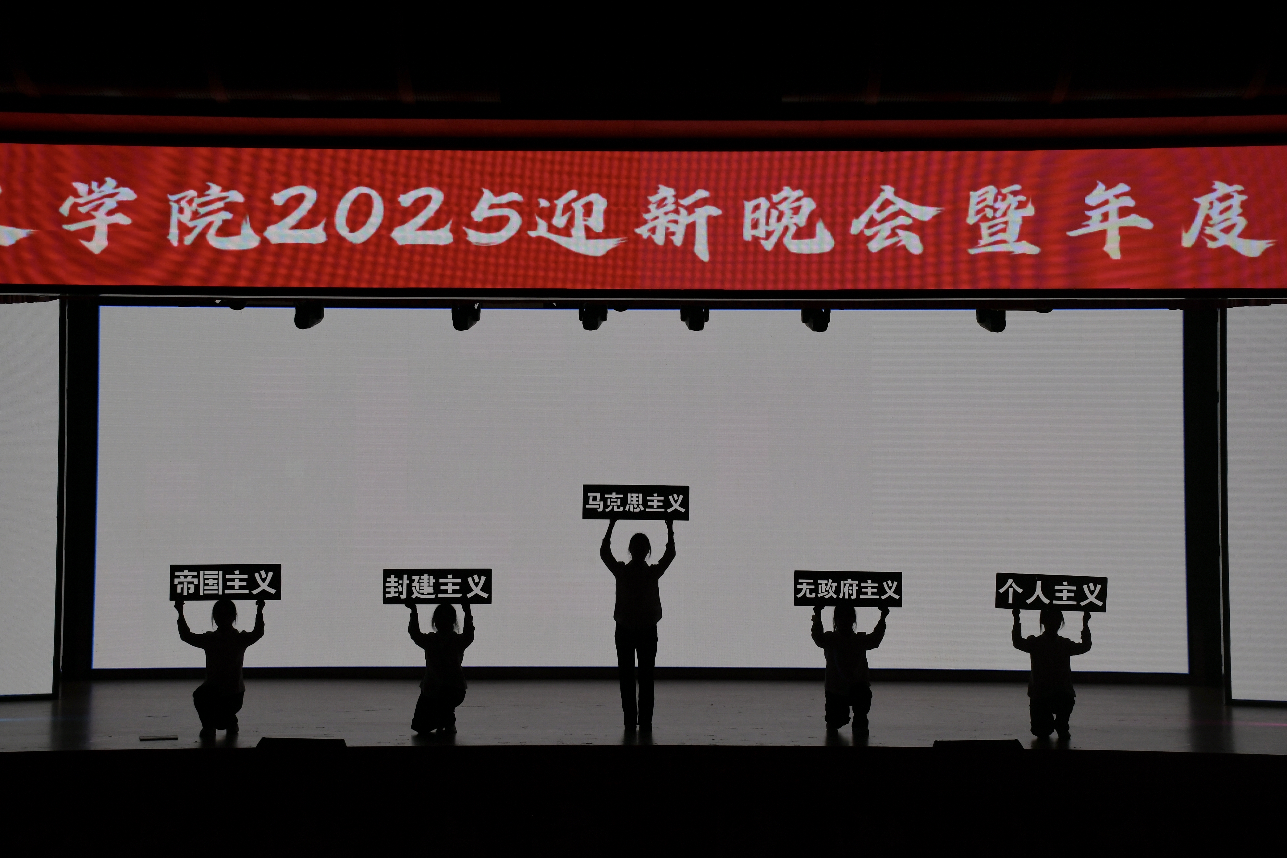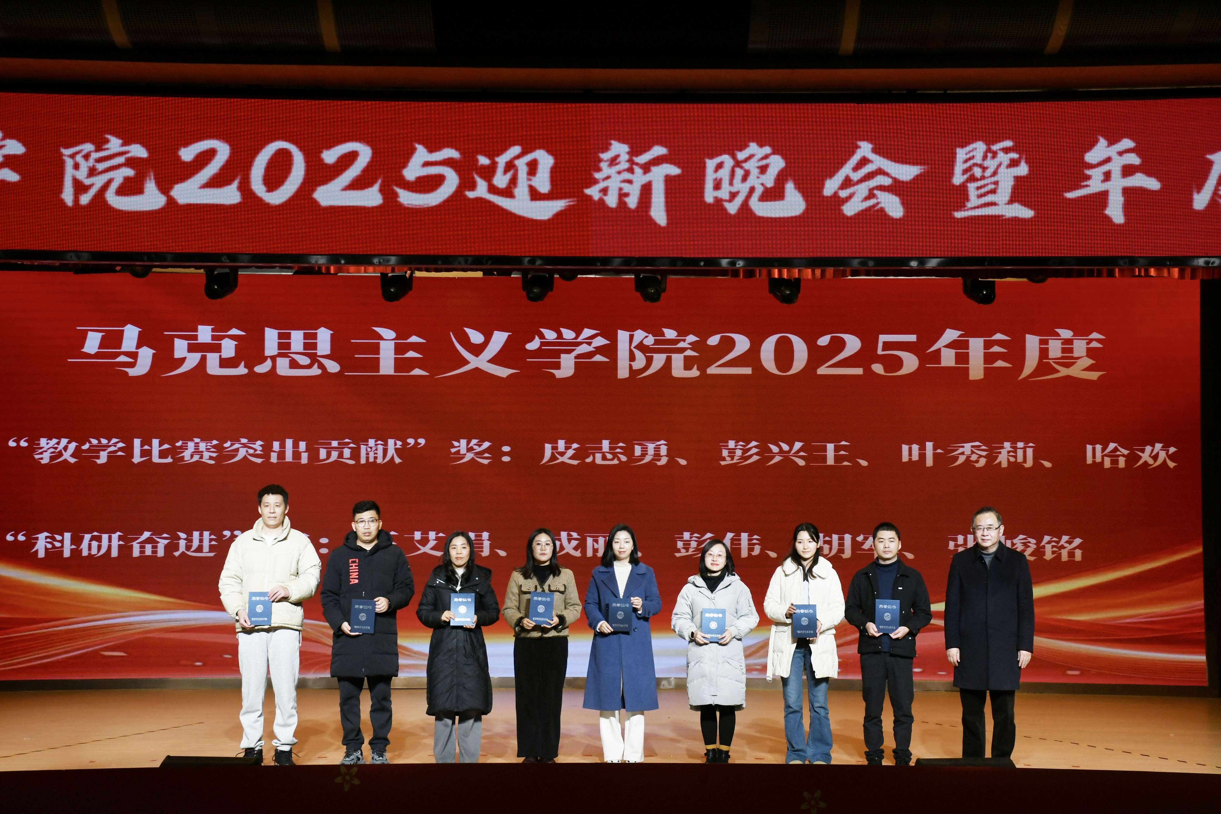 为共祈佳年,展现学院师生卓越风采,马克思主义学院于2025年12月17日19:00在第一学术报告厅举行2025迎新晚会暨年度表彰大会。学校党委书记、政府督导专员、马克思主义学院党总支书记王银峰,院长段吉福,副院长张沙沙,党总支副书记涂佳,思想政治教育系主任柳建国,习思想、毛中特教研室主任陈胜婷,马原、近代史纲要教研室主任彭伟,德法、形策教研室主任肖和平,教学实践中心副主任胡军,团总支书记王乙岚与全院师生共同见证属于马院的璀璨夜晚。晚会由赵思韩、李吉、向乐琦、王欢、赵哲言主持。 开场舞《ITS OK IM OK》 焰起舞惊鸿,光凝院聚潮。开场舞以动感旋律与活力舞姿拉开晚会序幕,用富有张力的舞蹈演绎,彰显出马院学子逐光向上的青春风采,更以跃动的节拍叩响逐光燃梦的序章,以飒爽的身影勾勒星耀永续的蓝图。 领导致辞 聚光成炬,领航前行。院长段吉福为晚会致开幕词。他首先代表学院领导向全体师生致以崇高的敬意与美好的祝福。段院长在致辞中总结,过去一年学院锚定办学定位、紧扣育人核心,扎实推进各项工作,在教学科研、团队建设、人才培养等领域硕果盈枝。他寄语全体教师坚守为党育人、为国育才的初心,锤炼师者风骨与育人本领;勉励广大学子深耕马克思主义理论,以知促行、以行践知,在实践中经风雨、见世面、长才干,成长为马克思主义的坚定信仰者、积极传播者和模范践行者。同时,他号召全院师生凝心聚力、奋勇争先,“与真理同行,与时代同步”,携手擘画2026年学院发展的崭新蓝图。 灯火初上,歌声荡漾。马院学子以青春为笔,以梦想为墨,在辞旧迎新的夜晚点亮第一束光。愿每一个起舞的日子都不被辜负,每一段启程的岁月都温暖如歌。 歌伴舞《如愿新吟》 悠扬歌声牵引情感脉络 灵动舞蹈诠释岁月温情 视听融合让“如愿”的美好愿景具象化 为舞台注入细腻绵长的感染力 小品《非诚不找》 幽默诙谐的剧情 聚焦当代人社交与情感话题 通过鲜活的角色演绎和接地气的台词 在爆笑桥段中传递积极的生活态度 兼具趣味性与共鸣性 第二篇章:燃梦新程·岁序华章 星光为伴,步履铿锵。马院学子将炙热的理想注入时代的脉搏,让奋斗的足迹绽放在崭新的序章。这里是荣誉的舞台,也是梦想再次出发的地方。 舞蹈《better things》 以跃动节拍为底 糅合现代舞的张力与流行舞的活力 舞者用利落肢体 勾勒对“美好”的向往 每一瞬皆迸发向上的青春能量 宣读表彰文件(教职工) 党总支副书记涂佳宣读教职工表彰文件。这份荣誉是对他们过往耕耘的诚挚认可,亦是激励全院师者踔厉前行的精神火种。 学校党委书记王银峰为2025年度教学比赛突出贡献奖、科研奋进奖 获得者颁奖 院长段吉福为2025年课程建设贡献奖、优秀青年骨干奖获得者颁奖 副院长张沙沙为2025年度大中小学思政课一体化工作先进个人奖、优秀管理服务奖获得者颁奖 情景剧《灯影里的红色旋律》 以“灯影”为意象载体 串联起红色故事与时代记忆 生活化的场景演绎和富有感染力的台词 让红色精神在细腻剧情中自然流淌 第三篇章:星耀征途·同心筑梦 星火汇聚成光,同心逐梦华章。今夜以喝彩为伴,用掌声照亮每一段奋进的旅程。同心同行,不负热爱;熠熠星光,正映照着马院人携手奔赴的远方。 歌曲《我的歌声里》 温柔细腻的旋律为底色 磁性嗓音缓缓诉说藏在歌声里的故事 将遇见的惊喜与记忆的温度融入每一句演唱 让熟悉的曲调唤起全场共同的情感共鸣 宣读表彰文件(学生) 团总支书记王乙岚宣读学生表彰文件。榜样是一面旗帜,更是一种力量。此次表彰不仅是对同学们过往努力与成绩的肯定,更是对“ 德、博学、求是、创新”精神的生动诠释。 思想政治教育系主任柳建国 习思想、毛中特教研室主任陈胜婷为党团建设先进个人代表颁奖 马原、近代史纲要教研室主任彭伟为争先创优先进个人代表颁奖 德法、形策教研室主任肖和平为赋能成长先进个人代表颁奖 教学实践中心副主任胡军为成长之星代表颁奖 舞与秀《芭比驾到》 打破传统表演边界 通过舞蹈展现动感节奏 借走秀呈现时尚巧思 粉色系视觉与俏皮动作相呼应 让“芭比”形象既可爱又充满力量 第四篇章:华章永续·福启新元 岁月流转,华章不息。马院学子用舞步踏响未来的节奏,以歌声传递崭新的祝愿。愿这一刻的温暖与感动,伴随莘莘学子迈向更加灿烂的明天。 民族舞《彩云之南》 以云南少数民族舞蹈元素为魂 舞者裙摆翻飞如孔雀开屏 指尖流转似溪流轻淌 灵动舞姿勾勒出彩云之南的秀丽风光与民族风情 让观众仿佛置身边陲仙境 歌曲串烧《声行万里》 从悠扬民谣到激昂金曲 用歌声丈量山河万里 在旋律切换间 带领观众开启一场跨越时空的听觉旅行 唤醒不同记忆里的情感共鸣 抽奖环节 幸运轮转,惊喜迭出。红包雨掀起阵阵欢乐热潮,幸运抽奖如流动星光点亮现场。这一环节以互动凝聚全场热情,让轻松愉悦的氛围弥漫会场,也让师生间的温暖祝福随幸运一同传递。 青春正好赴华章,携手扬帆破浪时;马院同心共逐梦,凝心聚力绽芳华。晚会的帷幕在温馨与激昂交织的合影中缓缓落下。这不仅是一场流光溢彩的视听盛宴,更是一堂润物无声的思政课、一次涤荡心灵的精神洗礼。它生动诠释了马院师生团结进取、意气风发的精神风貌,也为学院新一年的奋进征程奏
