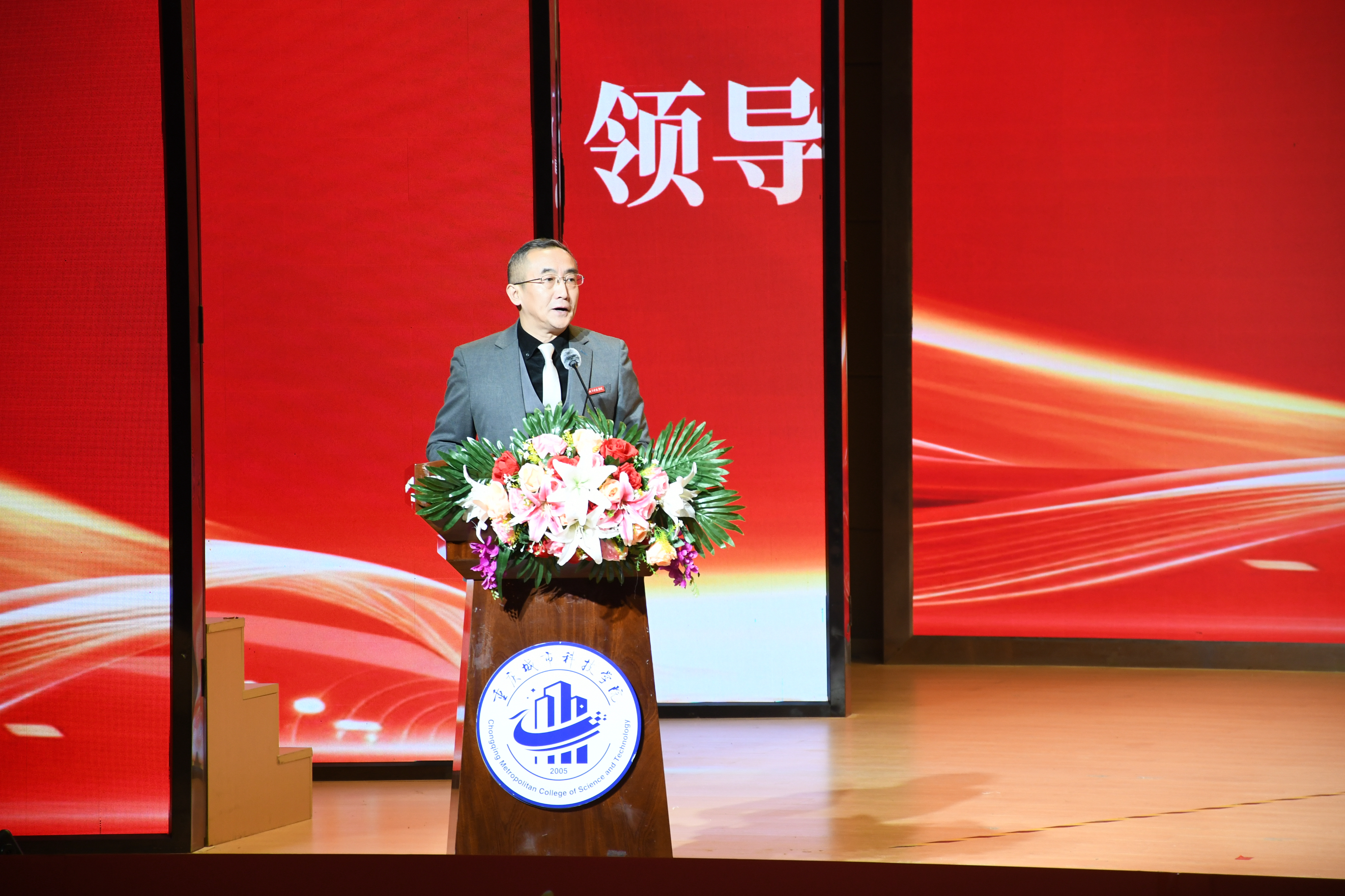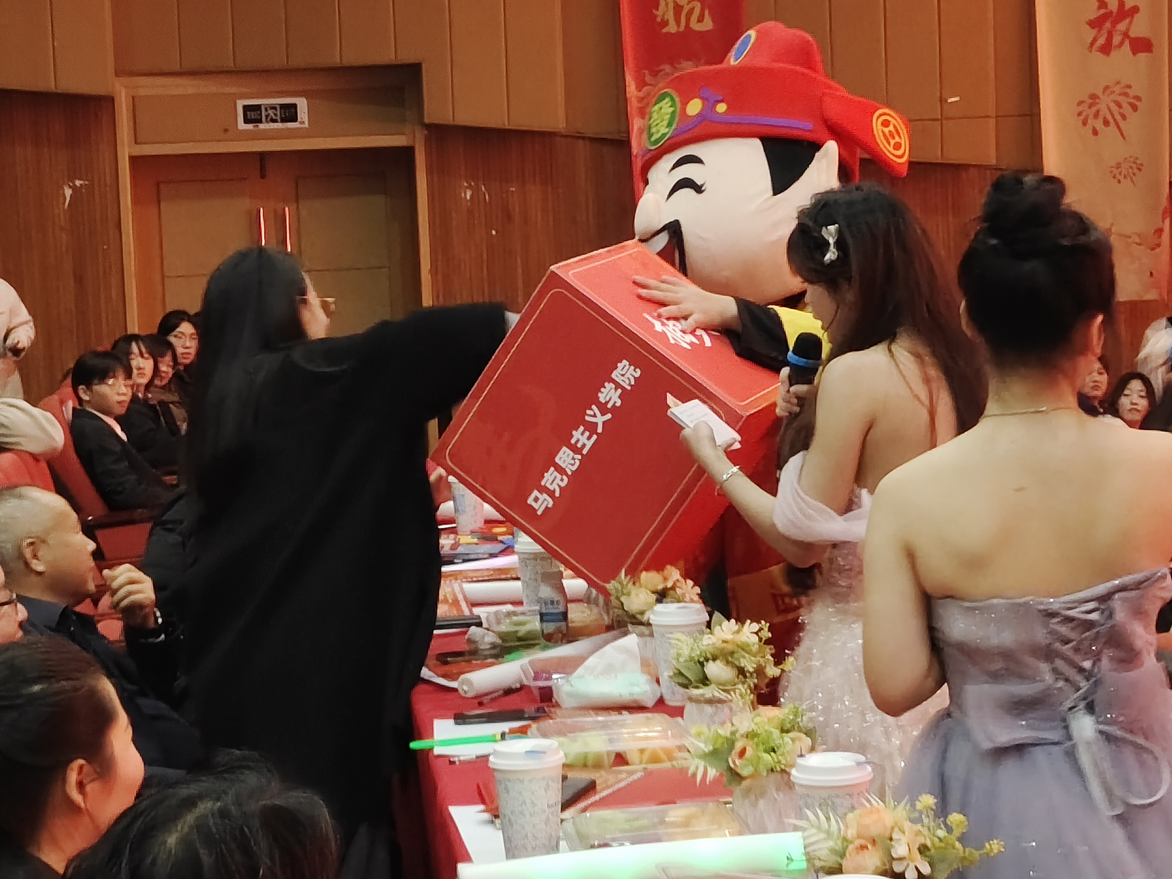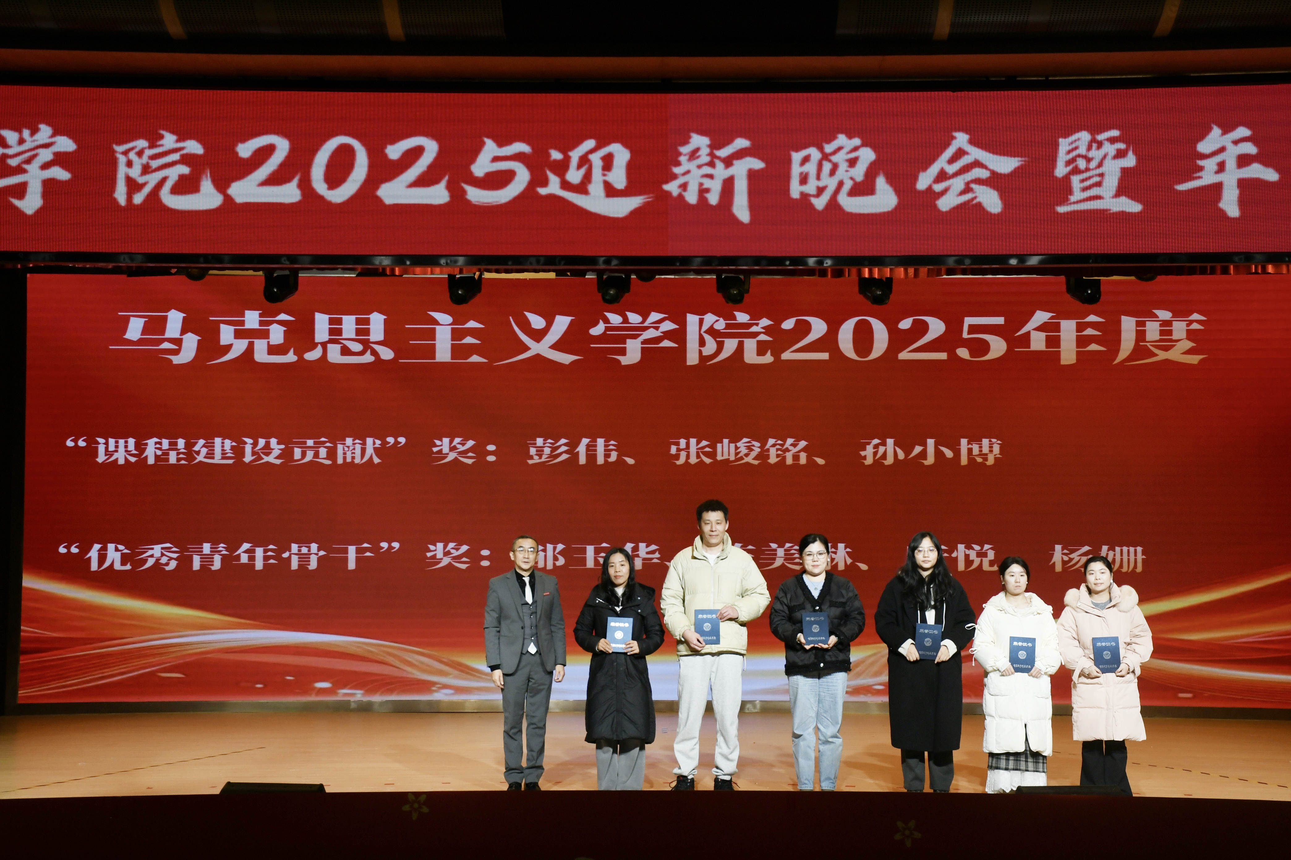 为共祈佳年,展现学院师生卓越风采,马克思主义学院于2025年12月17日19:00在第一学术报告厅举行2025迎新晚会暨年度表彰大会。学校党委书记、政府督导专员、马克思主义学院党总支书记王银峰,院长段吉福,副院长张沙沙,党总支副书记涂佳,思想政治教育系主任柳建国,习思想、毛中特教研室主任陈胜婷,马原、近代史纲要教研室主任彭伟,德法、形策教研室主任肖和平,教学实践中心副主任胡军,团总支书记王乙岚与全院师生共同见证属于马院的璀璨夜晚。晚会由赵思韩、李吉、向乐琦、王欢、赵哲言主持。 开场舞《ITS OK IM OK》 焰起舞惊鸿,光凝院聚潮。开场舞以动感旋律与活力舞姿拉开晚会序幕,用富有张力的舞蹈演绎,彰显出马院学子逐光向上的青春风采,更以跃动的节拍叩响逐光燃梦的序章,以飒爽的身影勾勒星耀永续的蓝图。 领导致辞 聚光成炬,领航前行。院长段吉福为晚会致开幕词。他首先代表学院领导向全体师生致以崇高的敬意与美好的祝福。段院长在致辞中总结,过去一年学院锚定办学定位、紧扣育人核心,扎实推进各项工作,在教学科研、团队建设、人才培养等领域硕果盈枝。他寄语全体教师坚守为党育人、为国育才的初心,锤炼师者风骨与育人本领;勉励广大学子深耕马克思主义理论,以知促行、以行践知,在实践中经风雨、见世面、长才干,成长为马克思主义的坚定信仰者、积极传播者和模范践行者。同时,他号召全院师生凝心聚力、奋勇争先,“与真理同行,与时代同步”,携手擘画2026年学院发展的崭新蓝图。 灯火初上,歌声荡漾。马院学子以青春为笔,以梦想为墨,在辞旧迎新的夜晚点亮第一束光。愿每一个起舞的日子都不被辜负,每一段启程的岁月都温暖如歌。 歌伴舞《如愿新吟》 悠扬歌声牵引情感脉络 灵动舞蹈诠释岁月温情 视听融合让“如愿”的美好愿景具象化 为舞台注入细腻绵长的感染力 小品《非诚不找》 幽默诙谐的剧情 聚焦当代人社交与情感话题 通过鲜活的角色演绎和接地气的台词 在爆笑桥段中传递积极的生活态度 兼具趣味性与共鸣性 第二篇章:燃梦新程·岁序华章 星光为伴,步履铿锵。马院学子将炙热的理想注入时代的脉搏,让奋斗的足迹绽放在崭新的序章。这里是荣誉的舞台,也是梦想再次出发的地方。 舞蹈《better things》 以跃动节拍为底 糅合现代舞的张力与流行舞的活力 舞者用利落肢体 勾勒对“美好”的向往 每一瞬皆迸发向上的青春能量 宣读表彰文件(教职工) 党总支副书记涂佳宣读教职工表彰文件。这份荣誉是对他们过往耕耘的诚挚认可,亦是激励全院师者踔厉前行的精神火种。 学校党委书记王银峰为2025年度教学比赛突出贡献奖、科研奋进奖 获得者颁奖 院长段吉福为2025年课程建设贡献奖、优秀青年骨干奖获得者颁奖 副院长张沙沙为2025年度大中小学思政课一体化工作先进个人奖、优秀管理服务奖获得者颁奖 情景剧《灯影里的红色旋律》 以“灯影”为意象载体 串联起红色故事与时代记忆 生活化的场景演绎和富有感染力的台词 让红色精神在细腻剧情中自然流淌 第三篇章:星耀征途·同心筑梦 星火汇聚成光,同心逐梦华章。今夜以喝彩为伴,用掌声照亮每一段奋进的旅程。同心同行,不负热爱;熠熠星光,正映照着马院人携手奔赴的远方。 歌曲《我的歌声里》 温柔细腻的旋律为底色 磁性嗓音缓缓诉说藏在歌声里的故事 将遇见的惊喜与记忆的温度融入每一句演唱 让熟悉的曲调唤起全场共同的情感共鸣 宣读表彰文件(学生) 团总支书记王乙岚宣读学生表彰文件。榜样是一面旗帜,更是一种力量。此次表彰不仅是对同学们过往努力与成绩的肯定,更是对“ 德、博学、求是、创新”精神的生动诠释。 思想政治教育系主任柳建国 习思想、毛中特教研室主任陈胜婷为党团建设先进个人代表颁奖 马原、近代史纲要教研室主任彭伟为争先创优先进个人代表颁奖 德法、形策教研室主任肖和平为赋能成长先进个人代表颁奖 教学实践中心副主任胡军为成长之星代表颁奖 舞与秀《芭比驾到》 打破传统表演边界 通过舞蹈展现动感节奏 借走秀呈现时尚巧思 粉色系视觉与俏皮动作相呼应 让“芭比”形象既可爱又充满力量 第四篇章:华章永续·福启新元 岁月流转,华章不息。马院学子用舞步踏响未来的节奏,以歌声传递崭新的祝愿。愿这一刻的温暖与感动,伴随莘莘学子迈向更加灿烂的明天。 民族舞《彩云之南》 以云南少数民族舞蹈元素为魂 舞者裙摆翻飞如孔雀开屏 指尖流转似溪流轻淌 灵动舞姿勾勒出彩云之南的秀丽风光与民族风情 让观众仿佛置身边陲仙境 歌曲串烧《声行万里》 从悠扬民谣到激昂金曲 用歌声丈量山河万里 在旋律切换间 带领观众开启一场跨越时空的听觉旅行 唤醒不同记忆里的情感共鸣 抽奖环节 幸运轮转,惊喜迭出。红包雨掀起阵阵欢乐热潮,幸运抽奖如流动星光点亮现场。这一环节以互动凝聚全场热情,让轻松愉悦的氛围弥漫会场,也让师生间的温暖祝福随幸运一同传递。 青春正好赴华章,携手扬帆破浪时;马院同心共逐梦,凝心聚力绽芳华。晚会的帷幕在温馨与激昂交织的合影中缓缓落下。这不仅是一场流光溢彩的视听盛宴,更是一堂润物无声的思政课、一次涤荡心灵的精神洗礼。它生动诠释了马院师生团结进取、意气风发的精神风貌,也为学院新一年的奋进征程奏