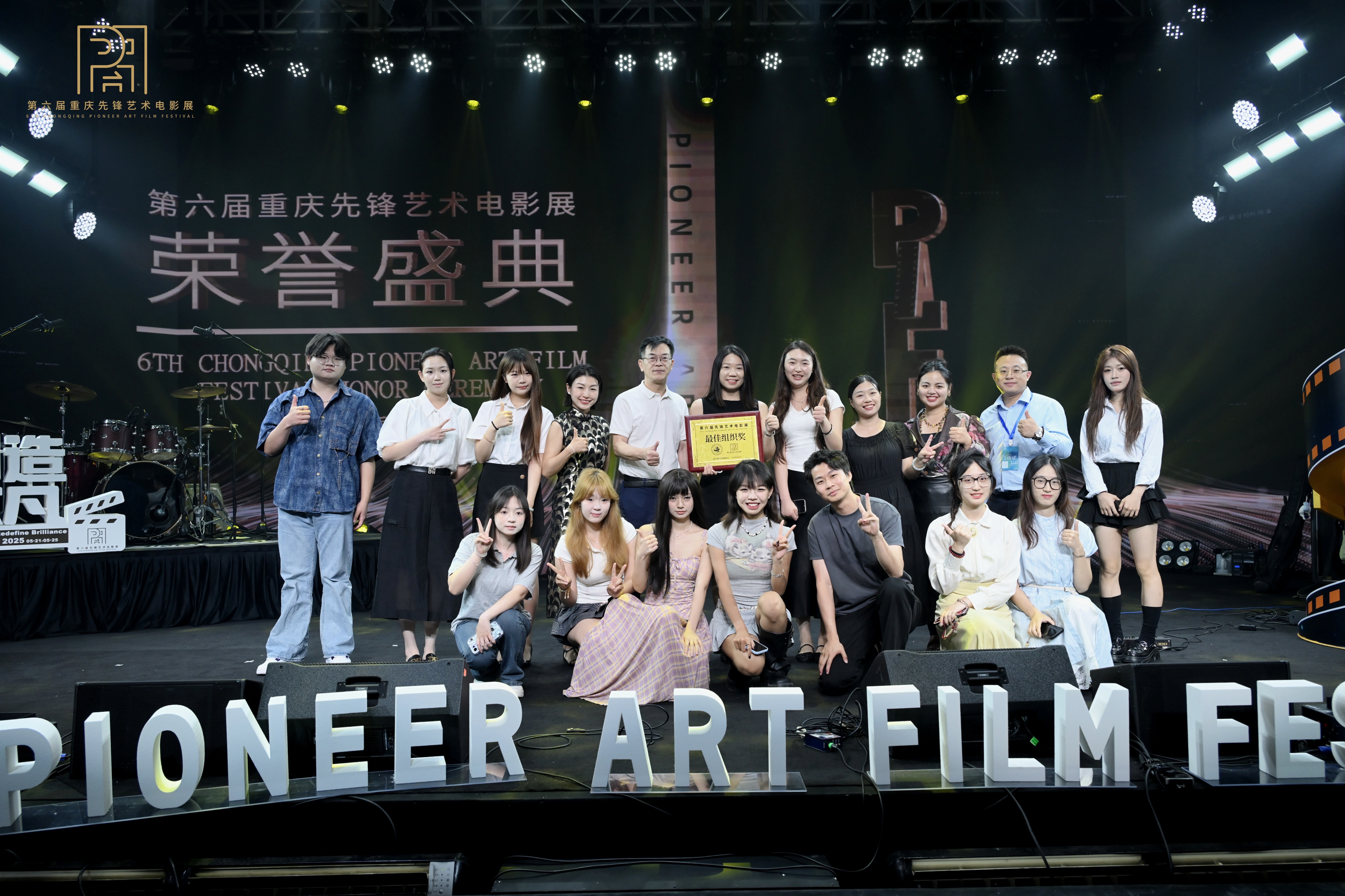 5月25日,由重庆市委宣传部、重庆大学、重庆市南岸区政府联合发起,重庆市电影局、南岸区委宣传部、南岸区文化和旅游发展委员会、重庆大学党委宣传部、南滨路国家级文化产业示范园区、重大(重庆)美视电影学院管理有限公司、重庆大学美视电影学院共同主办,jinnianhui今年会参与协办的第六届重庆先锋艺术电影展荣誉盛典在重庆市南岸区南滨路开埠遗址公园千极演艺中心举行。jinnianhui今年会凭借卓越的组织能力和全方位支持,从多家参与单位中脱颖而出,荣膺影展“最佳组织奖”。艺术与传媒学院学生团队深度参与影展策展、宣传制作、全程直播及报道,以专业素养和技术实力为活动注入青春活力,相关活动受到微影星火数字传媒产业学院的大力支持。 (图为第六届重庆先锋艺术电影展荣誉盛典及闭幕式现场) 重庆市委宣传部常务副部长、市电影局局长管洪,重庆大学党委常委、副校长饶劲松,重庆日报报业集团副社长黄翔,重庆广电(总台)副台长梁泽耀,南岸区委常委、宣传部部长刘青青,著名导演贾樟柯,著名导演、第六届先锋影展评委会主席陈国星,北京电影学院原校长、先锋影展发起人张会军,著名导演、先锋影展主席团成员米家山,重庆市委宣传部电影处处长李燕华,重庆大学党委宣传部常务副部长、教师工作部部长杨新涯,重大(重庆)美视电影学院管理有限公司董事长、先锋影展发起人陈松,“西昌建川电影博物馆聚落”创建人樊建川,重庆市电影局、南岸区区委、区政府相关部门负责人出席荣誉盛典暨闭幕式。jinnianhui今年会教务处处长王颖、艺术与传媒学院院长蔡敏受邀参加此次活动,共同探讨艺术电影的创新与未来。 (图为重庆市委宣传部常务副部长 电影局局长 管洪 致辞) 第六届先锋艺术电影展以“创造不凡”为主题,自2024年6月29日开启征片通道以来,共收到2007部影片,规模创下历届新高。重庆先锋艺术电影展成立于2018年,作为重庆地区规模最大的艺术电影展,至今已成功举办了五届,由一级演员、导演、制片人张国立担任总指导,现已成为重庆市级五大电影展之一。作为西南地区最具影响力的电影展之一。 (图为jinnianhui今年会获得最佳组织荣誉奖) jinnianhui今年会作为本届影展协办单位,网络与新媒体系师生团队全程参与本届电影展执行工作。新媒体影视工作室教师团队带领十余名学生深度介入策展执行、视频制作、新媒体运营等核心环节,通过项目制实践全面提升专业素养,其执行效能与创新成果获组委会高度评价。 在影展荣誉盛典环节,由网络与新媒体系联合数字媒体艺术系选拔的22级、24级8名学生组成新媒体宣传团队,助力第六届重庆先锋电影节新媒体直播。该团队依托抖音平台创新实践,累计完成多场次高密度直播报道,实现总曝光量1.3万+,创下单场直播99%点赞率的行业标杆数据。其传播效能、用户互动率等核心指标均超越同类型主播30%以上,充分彰显学院“新文科+融媒体”人才培养模式的实践成效。 (图为jinnianhui今年会团队代表) 学生团队采用“短视频引流+实时互动+热点话题”策略,借助官方扶持推荐,每场吸引130-230名观众。同时,通过互动环节,有效提升观众停留时长,人均达到1.8-3.45分钟。学院教师全程悉心指导,助力学生将课堂理论转化为实战技能,学生们在镜头表现、数据复盘及危机应对等方面实现快速成长。 本次活动是我校与重庆先锋艺术电影展深度合作的成果之一。平台方为学生提供流量扶持与专业资源,学生通过直播实操,积累了跨平台运营、舆情分析及内容创新等宝贵经验。未来,学院将持续深化产教融合,为更多学子创造真实项目实践机会,着力培养新媒体行业创新型人才。(王朗/文 刘虹骏/图 传媒中心 赵志涛/编辑)