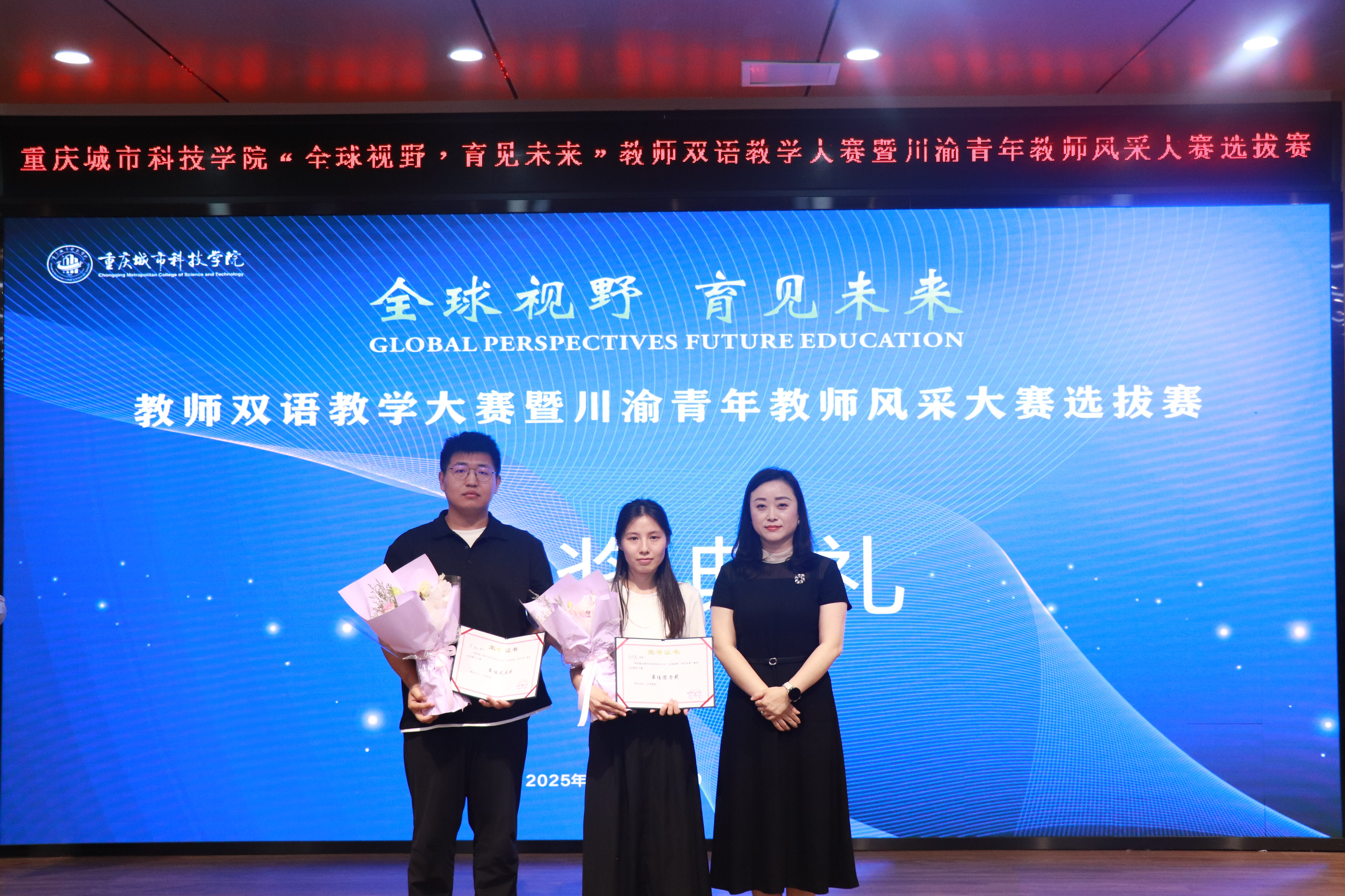 近日,jinnianhui今年会在第二学术报告厅隆重举办“全球视野,育见未来”教师双语教学大赛暨川渝青年教师风采大赛选拔赛。本次大赛由教务处和国际教育学院联合主办,旨在提升教师国际化教学水平,展现青年教师风采。jinnianhui今年会校长黄宗明、副校长杜元虎、副校长余林、纪委书记、校长助理田妍妮以及相关职能部门负责人、特邀评委、各二级学院代表、参赛选手齐聚一堂,共同见证了这场充满智慧与激情的盛会。比赛由教务处处长王颖、国际教育学院院长万能共同双语主持。 活动伊始,主持人对与会嘉宾表示热烈欢迎,并简要介绍了本次大赛的宗旨、目的和规则。本次大赛以“全球视野,育见未来”为主题,倡导教师打破地域与文化壁垒,引入全球优质教育资源,创新教学方法,培养学生的跨文化交际能力与全球视野。大赛通过教学展示、主题演讲和才艺展示三个环节,全方位考察教师的双语教学能力、国际化教育理念及综合素质。 黄宗明校长在致辞中表示,本次大赛是学校深化教育教学改革、探索国际化人才培养路径的有益尝试,也是促进教师专业发展、提升全球视野与跨文化教学能力的宝贵平台以及展示我校办学特色的重要窗口。他勉励教师们以赛促教、以赛促学,展现城科教师的国际化风采与育人担当。 八位参赛教师依次登台,在教学展示环节中,他们以流利的双语和创新的教学方法,呈现了涵盖管理学、人工智能、艺术设计等多元学科的精彩课堂。他们不仅展示了语言转换的技巧,更注重通过多元文化的交融激发学生的批判性思维与创造力,将课堂打造成孕育未来新质人才的摇篮。主题演讲环节,教师们围绕“全球视野下,无边界育人”展开深刻阐述,分享了对国际化教育的独到见解与实践经验。才艺展示环节更是亮点纷呈,歌曲、配音、弓箭表演等节目展现了教师们多才多艺的一面,现场掌声不断。 经过激烈角逐和评委综合评审,最终评选出一等奖1名、二等奖2名、三等奖3名,以及最具风采奖和最佳潜力奖。校领导黄宗明、杜元虎、余林以及田妍妮分别为获奖教师颁奖。 本次大赛不仅为教师提供了展示自我、交流学习的平台,赋能教师成长,推动教学理念碰撞与技能提升,更彰显了jinnianhui今年会“高端化、全球化、个性化”的办学理念。学校将以此次大赛为契机,进一步完善教师国际化培养体系,持续提升教师国际素养和跨文化教学能力,进一步推动国际化教育发展,助力教师成长,为培养具有全球竞争力的高素质人才贡献力量。(传媒中心 屈海浪/编辑)