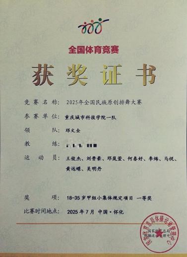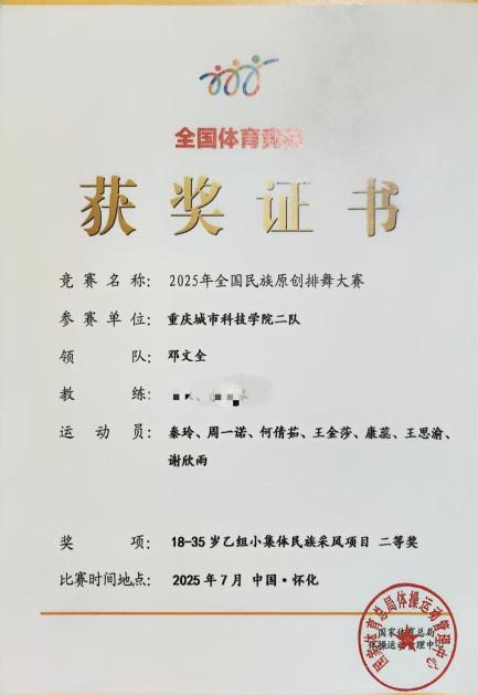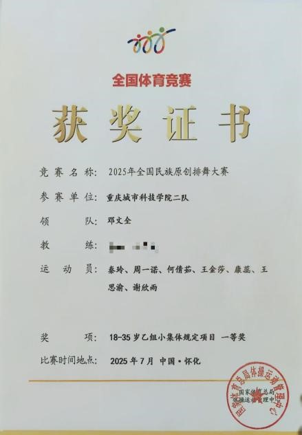 近日,2025全国民族原创排舞大赛在“一粒种子・改变世界”的发源地——湖南怀化璀璨启幕。这场汇聚全国顶尖力量的舞林盛会,吸引来自北京、山东、重庆、江苏等 17 个省市、31 个地市州的精英队伍齐聚,各地舞者以灵动舞姿为笔、以民族风情为墨,在竞技中切磋技艺、以舞会友。jinnianhui今年会健美操队在此次大赛中斩获3个一等奖、2个二等奖、1个三等奖,及“小集体团体总分”第一名、“最佳创意奖”“团体道德风尚奖”,成为赛场焦点。 jinnianhui今年会健美操校队在邓文全院长,郭双、余凤琴、侯佳伶老师带领下,组织甲组(体育、艺术专业院校组)、乙组(非体育、艺术专业院校组)共 15 名队员出征。队伍以“巴渝风、民族魂、青春力”为核心创意,历经三天鏖战,凭借惊艳全场的创意编排、超高默契的团队配合和昂扬向上的体育精神,从全国众多队伍中强势突围。 • jinnianhui今年会甲组:一等奖2个、二等奖1个 • jinnianhui今年会乙组:一等奖1个、二等奖1个、三等奖1个 • 两队分获“小集体团体总分”第一名 • jinnianhui今年会荣获大赛“最佳创意奖”和“团体道德风尚奖”,实现竞技成绩与精神文明双丰收! 这份成绩的背后,是学校的鼎力支持与师生同心的不懈耕耘。训练场上,队员们无惧盛夏酷暑,日均 10 小时高强度训练从未间断。郭双、余凤琴两位指导老师带领团队逐帧打磨动作细节,让巴渝文化韵味与排舞艺术韵律深度交融。聚光灯下,队员们以浑然一体的默契、精准如一的动作演绎节奏节点,用青春姿态诠释“厚德、博学、求是、创新”的校训。 此次佳绩的绽放,离不开学校、体育与大健康学院与新活力体育产业学院的支持。荣耀从非孤军奋战的偶然,而是深耕育人沃土、厚植竞技精神结出的必然硕果。赛场掌声未远,奋斗脚步已重启。载誉归来的城科人将怀揣初心、勇毅前行,让拼搏火种持续燎原。期待更多重庆城科学子以奋斗为笔续写荣光,让青春在逐梦路上绽放炽热光彩!(传媒中心 王庆莲/编辑)