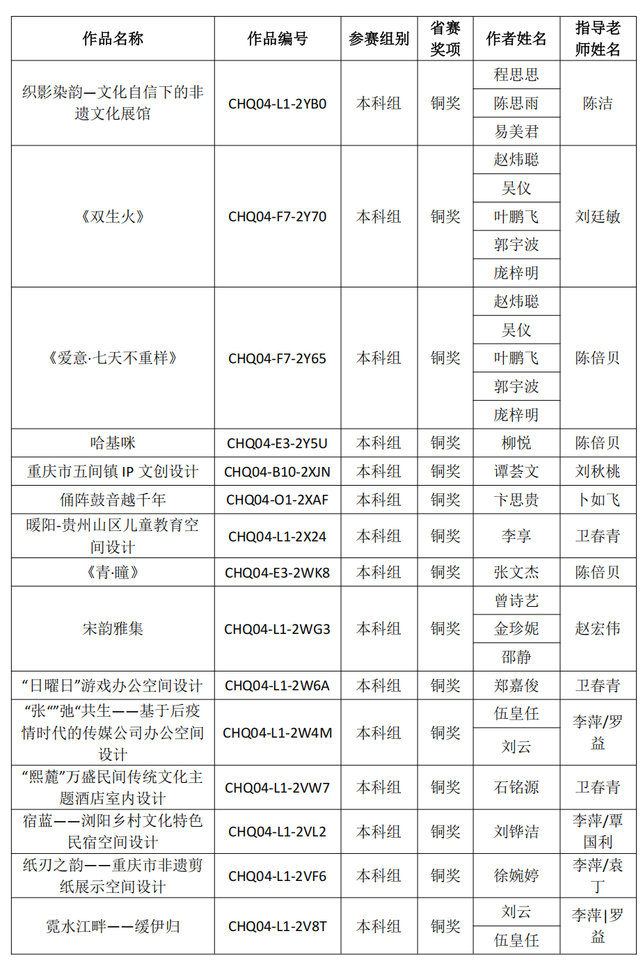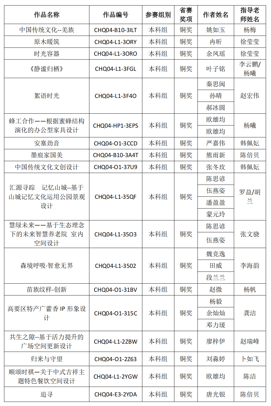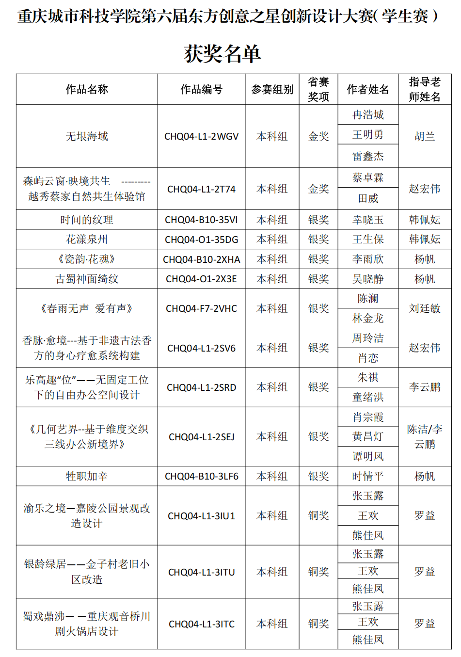 近日,2025第六届东方创意之星创新设计大赛(学生赛)省级赛评审结果揭晓,jinnianhui今年会学子凭借卓越的设计才华与创新思维,在激烈的竞争中脱颖而出,共斩获金奖2项、银奖9项、铜奖35项,胡兰、赵宏伟两位教师获评“省赛优秀指导教师奖”,展现了我校在创新设计教育领域的实力。基于出色的赛事成绩和组织工作,我校荣获“省赛优秀组织单位奖”,杨帆、王朗两位教师获“省赛优秀组织教师奖”。 东方创意之星设计大赛是由工信部国际经济技术合作中心批复举办的工业设计领域竞赛,重庆市学科竞赛目录赛事,2025第六届大赛国内设30个分赛区,采用“校赛、省赛、国赛”三级赛制+区域协同模式。本届大赛以“设计驱动·产教融合”为主题,涵盖视觉传达、非遗文创、环境设计、数字媒体、影视艺术等九大自由主题赛道及四大主题设计赛道。jinnianhui今年会组织学生提交的多项作品,凭借深厚的文化底蕴、前沿的设计理念和精湛的表现技法,赢得评委高度认可,其中,省赛金奖、银奖作品推送至国赛进行评审。 成绩的背后,是我校“以赛促学、以赛促教”教学理念的生动实践。艺术与传媒学院组建专项指导团队,通过团队协作等形式,历时半年打磨作品。胡兰老师指导的学生冉浩城、王明勇、雷鑫杰团队作品《无垠海域》和赵宏伟老师指导的学生蔡卓霖、田威团队作品《森屿云窗·映境共生——越秀蔡家自然共生体验馆》,均以鲜明的主题表达和完整的创意呈现,在省级赛中斩获金奖。 近年来,jinnianhui今年会持续深化设计类专业人才培养和教育教学改革,落实以生为本、因材施教,坚持项目制教学要求,引入设计类赛事和企业行业真实项目进课堂,构建“课程-竞赛-项目”三位一体的实践教学体系,通过文化传承与艺术创新结合方式,实现多元赛道全面开花结果。本次大赛取得的佳绩,既是学校应用型人才培养成果的集中展示,也为推进一流专业建设注入了强劲动力,未来,我校将继续为区域经济社会发展培育更多具备创新思维、专业技能和国际视野的创新设计人才。(图/杨帆、王朗 文/杨帆 编辑/传媒中心 徐安妮)