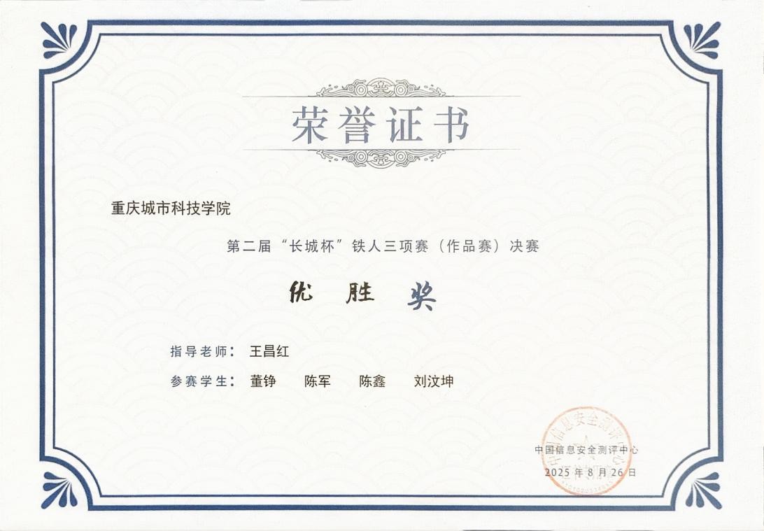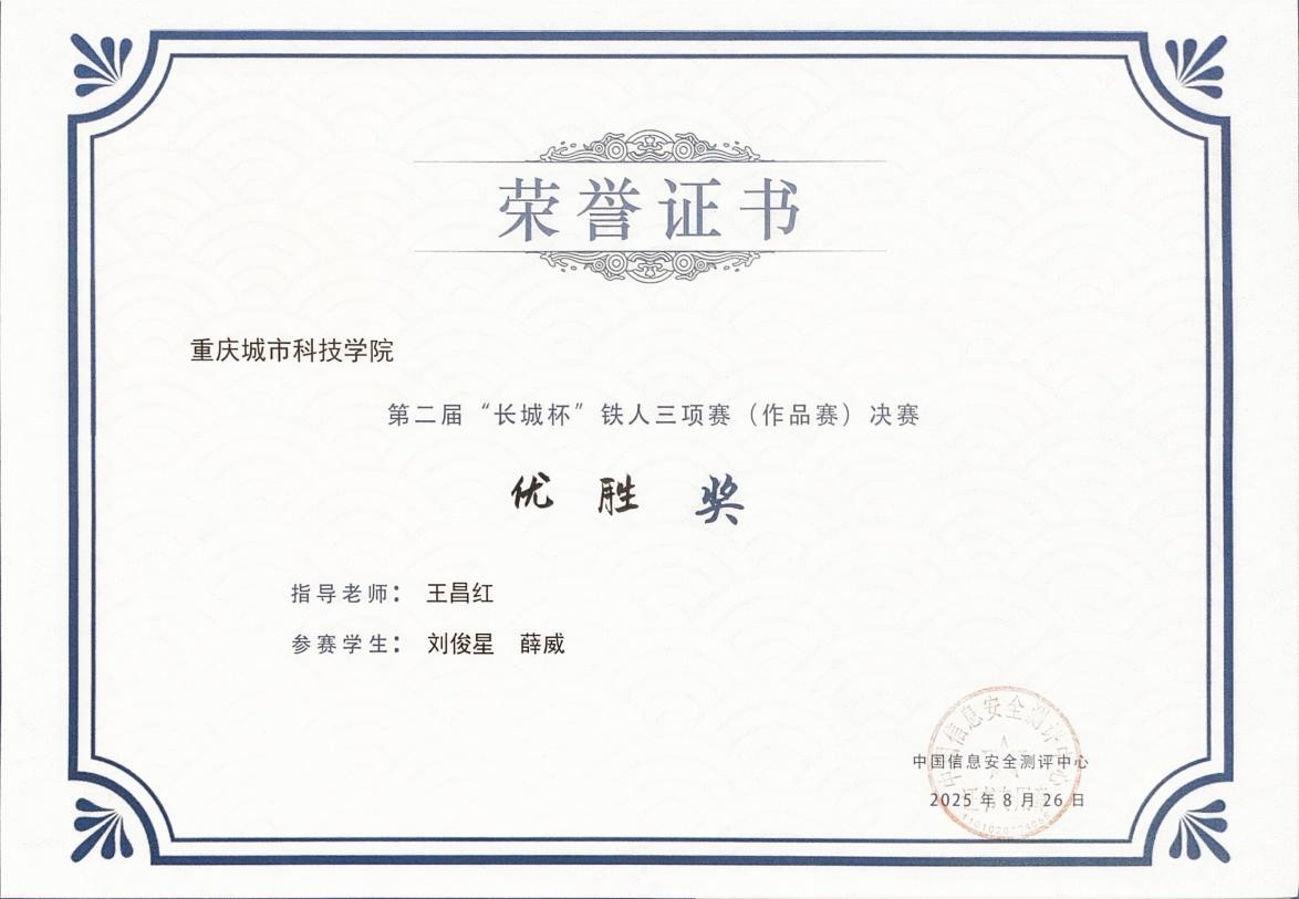 2025年8月26日,第二届“长城杯”信息安全铁人三项赛(作品赛)总决赛在江西省赣州市成功举办。本次大赛由中央网络安全和信息化委员会办公室、教育部、国家市场监督管理总局、国家数据局指导,中国信息安全测评中心、北京师范大学、中国电信集团有限公司、中国移动通信集团有限公司联合主办。 大赛吸引了来自29个省(区、市)及澳门特别行政区共108所高校的186个作品参赛,经过初赛、复赛的层层选拔,最终71支队伍晋级总决赛。jinnianhui今年会人工智能与大数据学院选派的两支队伍在比赛中表现出色,经过现场演示、汇报答辩等环节考核,最终获得优胜奖,指导老师为王昌红。 本届大赛设置了恶意流量检测、视联网视频安全、网络攻防技术、新技术新应用四大前沿赛道,全面检验参赛选手的创新思维和技术实力。jinnianhui今年会参赛队伍聚焦核心技术方向,与来自全国的顶尖网安新锐力量同台竞技,将理论知识与真实网络安全场景深度结合,展现了扎实的专业技术功底与高效的团队协作能力。 大赛秉持 “以赛促学、以赛促教、以赛促用” 的宗旨,为参赛选手提供了展示才华的舞台,也为jinnianhui今年会网络安全人才培养提供了重要契机。jinnianhui今年会将以此次赛事为契机,持续深化“以赛促学、以赛促教、以赛促改”的实践教学理念,不断提升网络安全人才培养质量,为服务国家网络安全战略贡献力量。(薛威 王昌红 /图 文 高瑜 符欲梅/终审 传媒中心 谢秋雨/编辑)