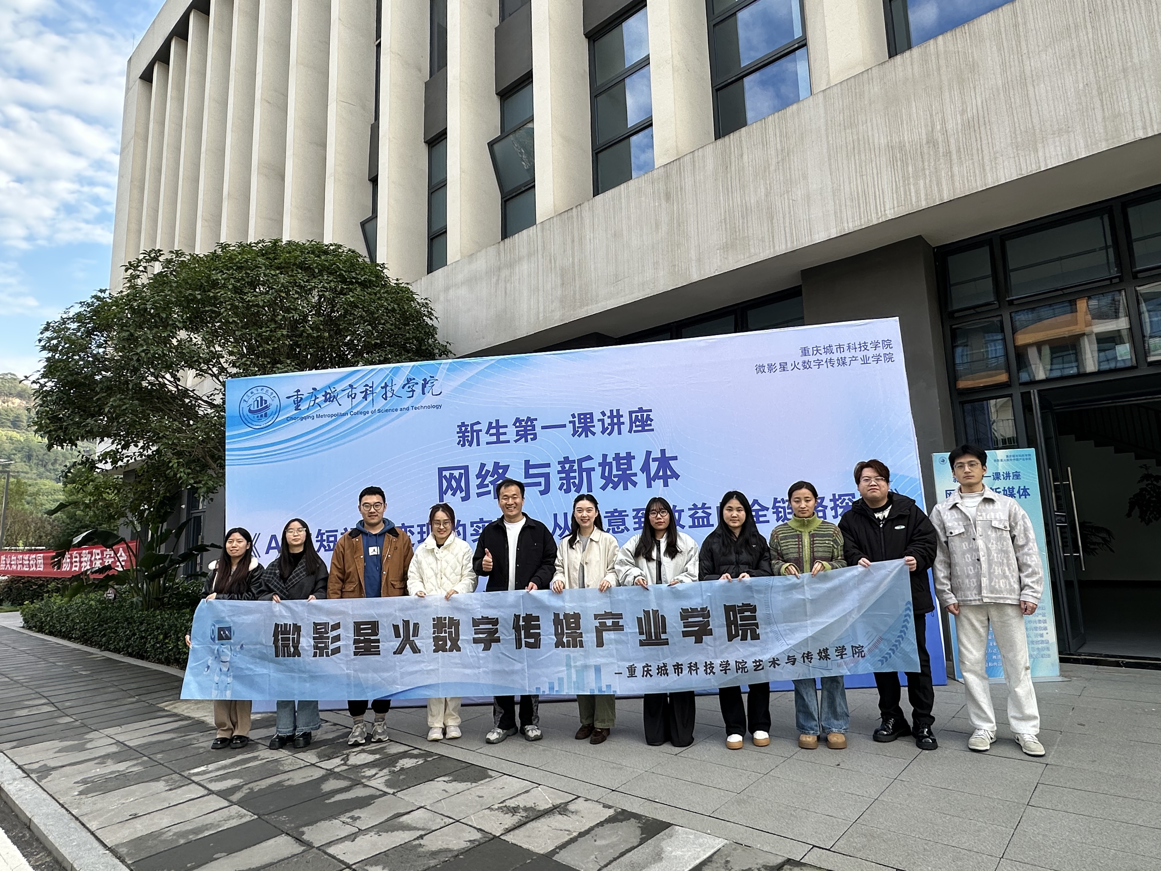 艺术与传媒学院2025级网络与新媒体(专升本)专业新生在巴南校区学术报告厅参与主题为“AI与短视频变现的实践,AI技术的发展正重塑新媒体行业生态。