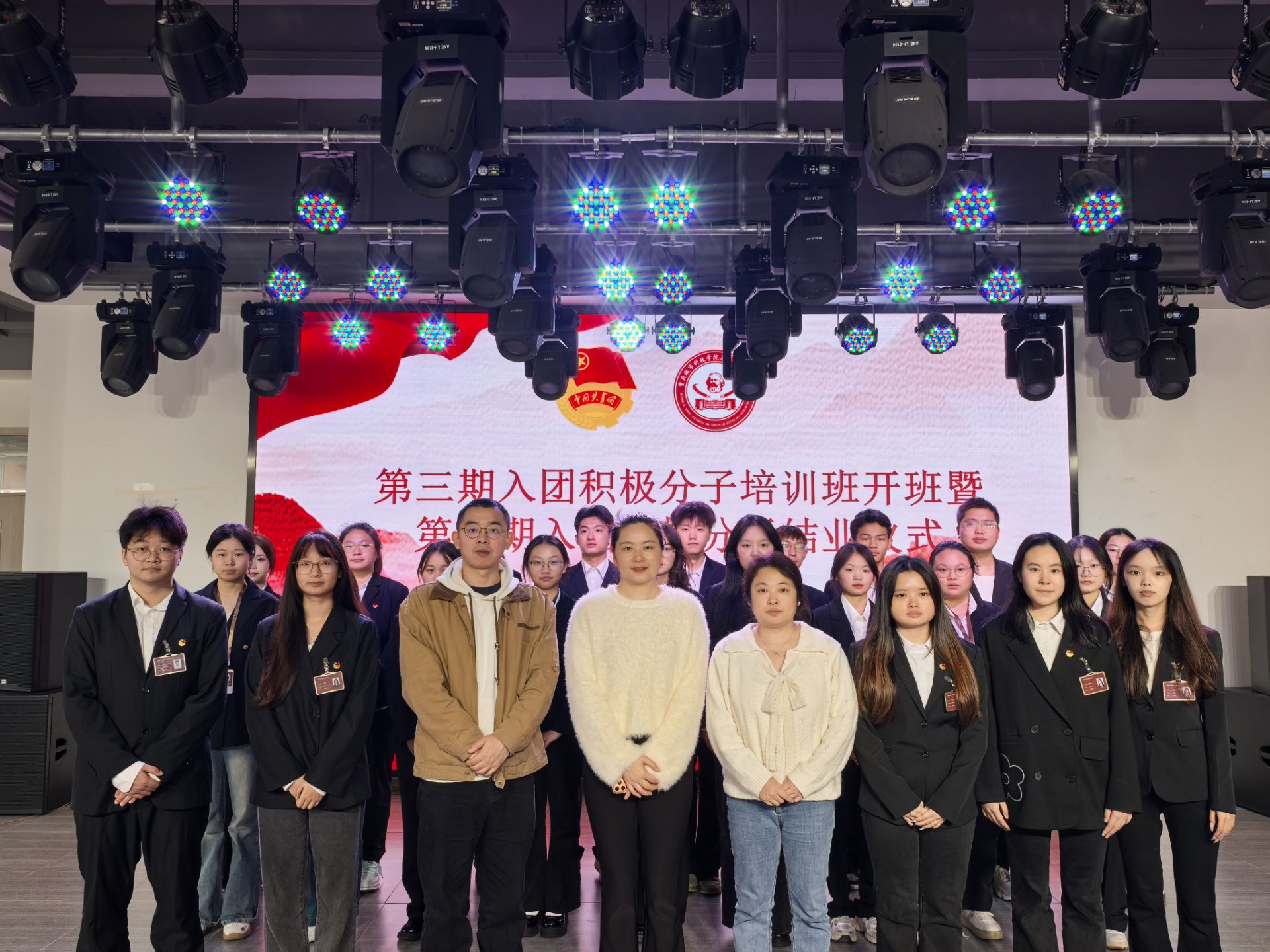 马克思主义学院于一食堂三楼大学生活动中心隆重举行第三期入团积极分子培训开班暨第二期入团积极分子结业仪式,宣读第二期优秀学员表彰决定团总支书记王乙岚宣读优秀学员表彰决定。