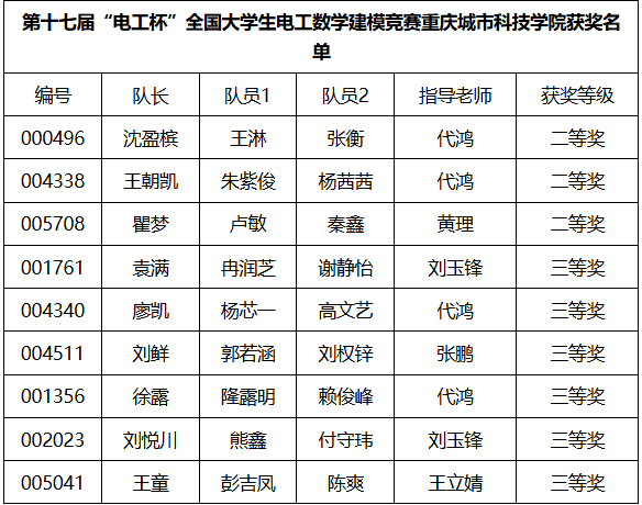 重庆城科学子在第十七届“电工杯”全国大学生电工数学建模竞赛中 斩获佳绩 近日,第十七届“电工杯”全国大学生电工数学建模竞赛获奖名单正式公布。我校学子在本次竞赛中表现优异,共荣获全国二等奖3项、三等奖6项,充分展现了我校学生在数学建模方面的扎实功底与创新能力,也反映出学校在学科竞赛方面的培养成效。 本届竞赛由中国电机工程学会电工数学专业委员会主办,是国内电气工程与数学交叉领域的一项重要赛事,吸引了来自清华大学、浙江大学、复旦大学、武汉大学、同济大学、国防科技大学、中国科学技术大学等全国31个省(区、市)968所高校的万余支队伍同台竞技。竞赛始终秉持“以赛促研、以赛促学”的理念,鼓励学生以团队协作方式,综合运用电工技术、人工智能、大数据等多学科知识,解决电力系统中的实际问题,致力于为能源电力行业输送具有创新能力和实践能力的复合型人才。 我校参赛队伍在比赛中展现出优秀的跨学科协作与解决复杂工程问题的能力,这得益于学校近年来在跨学科教育体系构建与创新能力培养方面的持续投入。通过组建多学科背景的指导教师团队,学校积极激发学生的创新潜能,提升其竞赛实战水平,全面助力学生成长成才。此次优异表现,充分印证了我校在高素质应用型人才培养方面的实践成果。展望未来,我校将进一步深化“以赛促教、以赛促学”的育人机制,不断加强专业能力建设,稳步提升人才培养质量。(刘玉锋、代鸿/文 传媒中心 熊素平/编辑)
