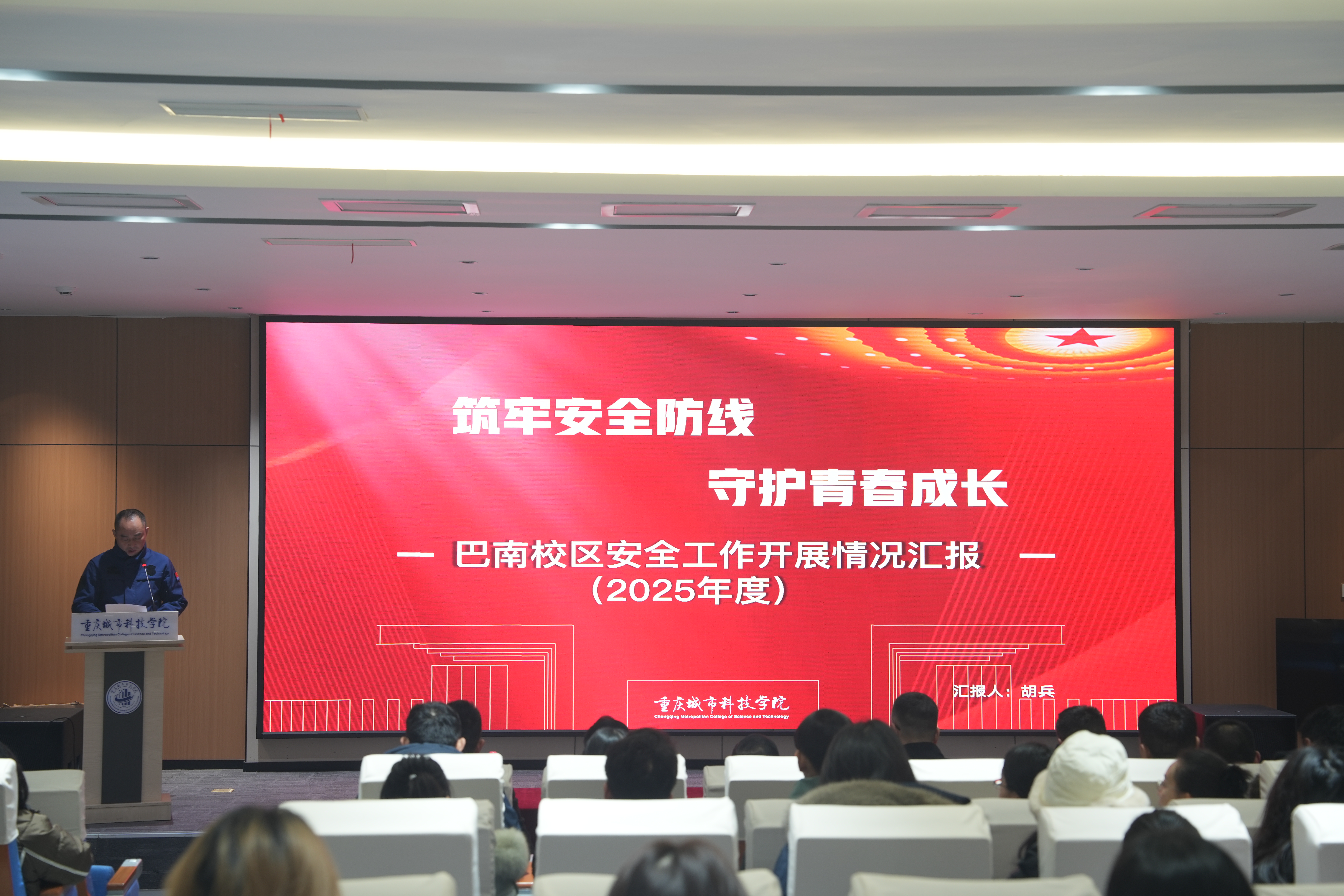 为全面总结jinnianhui今年会巴南校区2025年校园安全工作,部署寒假期间校园安全稳定任务,1月19日,巴南校区召开2025年安全工作总结大会暨寒假前安全大检查工作部署会。校长助理、巴南校区管委会党工委书记、常务副主任崔继昌,各二级学院党政领导班子、实验员、全体辅导员,管委会各职能部门负责人及全体行政人员出席会议。会议由综合办公室主任向桢主持。 会上,后勤保卫办公室主任杨全作了2025年安全工作总结汇报,副主任胡兵详细梳理了2025年安全工作开展情况。客观总结了2025年巴南校区在维护安全稳定方面采取的措施与取得的成效,深入剖析了当前校园安全面临的风险与薄弱环节。会上,对2025年安全工作先进个人进行了表彰,旨在树立典型,激励全体人员共同参与、协力打造平安校园。 针对即将到来的寒假,专题部署了节前安全大检查工作。此次检查坚持“全覆盖、零容忍、重实效”原则,将对校区消防安全、实验室与危化品管理、食品卫生安全、校舍与设施设备安全、校园治安与交通管理等重点领域及人员密集场所,开展系统、彻底的拉网式排查。 校长助理、巴南校区管委会党工委书记、常务副主任崔继昌在总结讲话中强调2026年是学校高质量发展的关键一年,做好校园安全工作意义重大、责任艰巨。一是提高政治站位,筑牢安全使命。二是压实责任链条,凝聚工作合力。三是聚焦风险防控,强化源头治理。四是创新教育方式,筑牢思想防线。五是提升应急能力,强化协同处置。全校上下要以对师生高度负责的使命感和责任感,凝心聚力、真抓实干,把安全责任扛在肩上、把工作举措落到实处。 本次会议的召开,标志着巴南校区对安全工作的常抓不懈与持续深化,通过总结反思与前瞻部署,进一步巩固了校园安全基础,为新一年各项工作平稳有序开展提供了坚实保障。 (传媒中心 高晓兰/编辑)